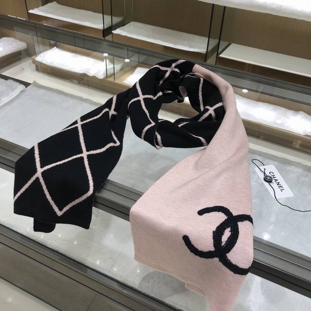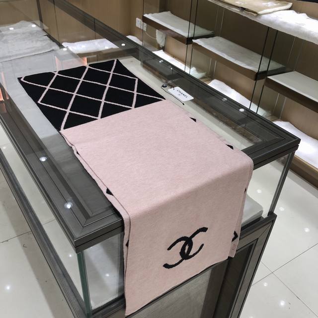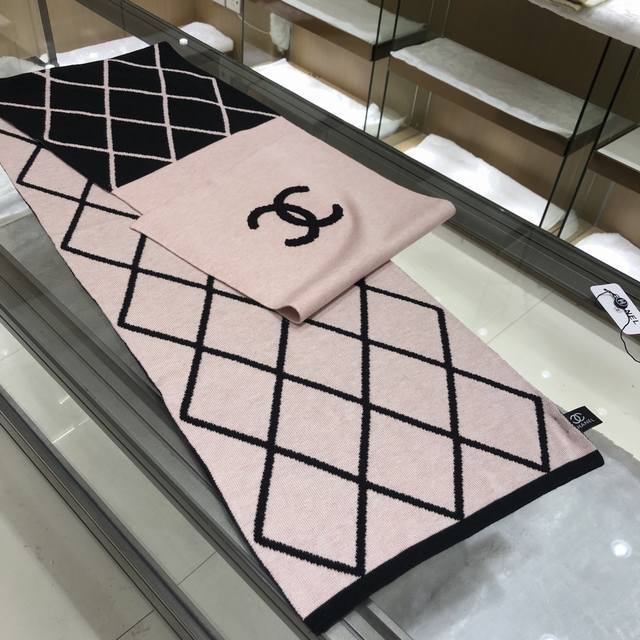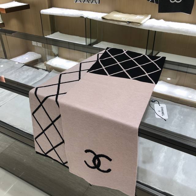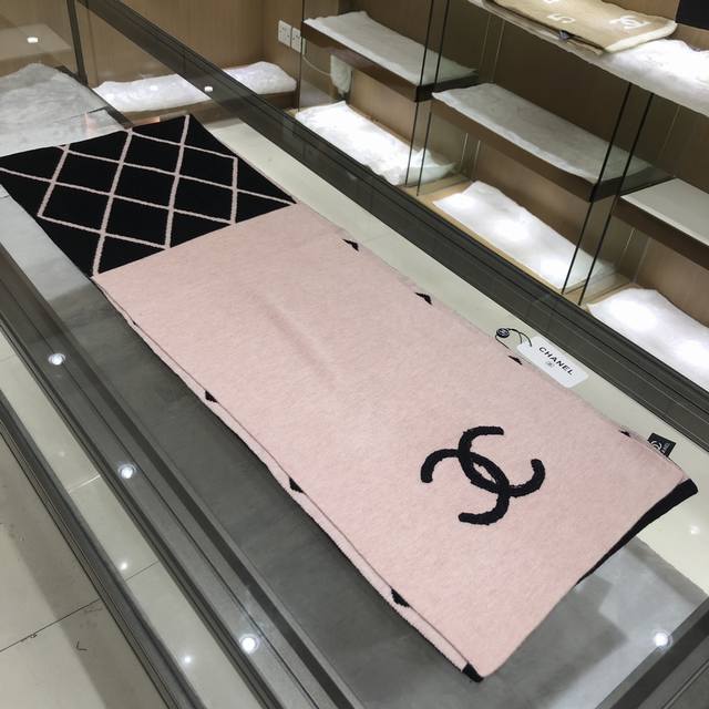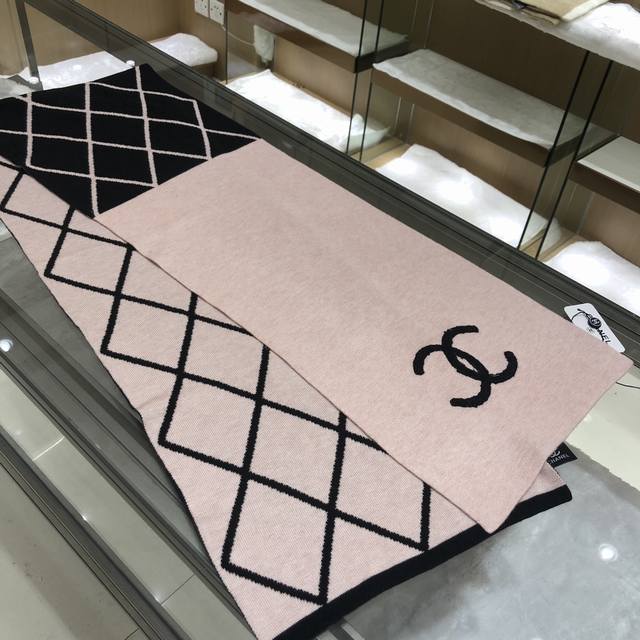Pink Chanel classic diamond design double-sided color new cashmere knitted scarf original craftsmanship