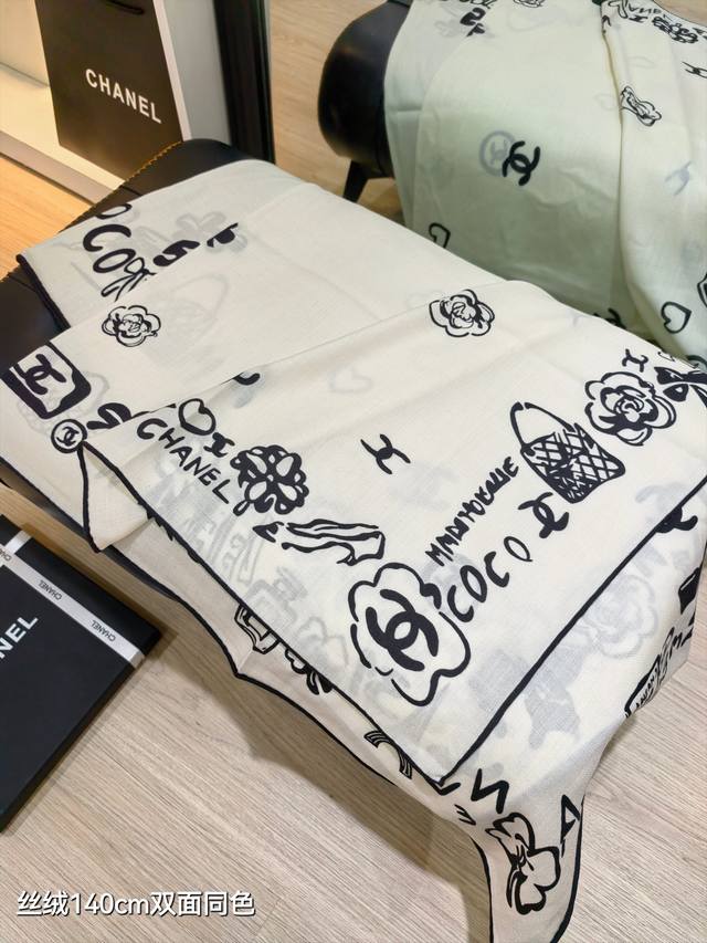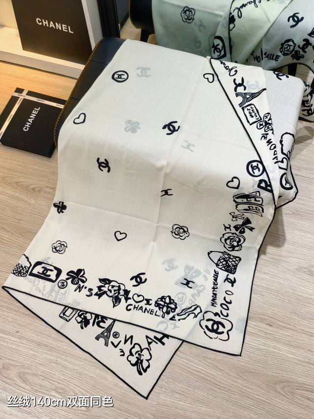 / Rcc2561 Double-sided same color 140X140Cm 70% cashmere 30% silk Chanel