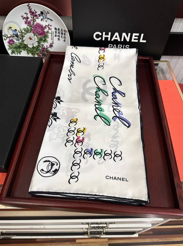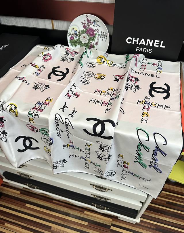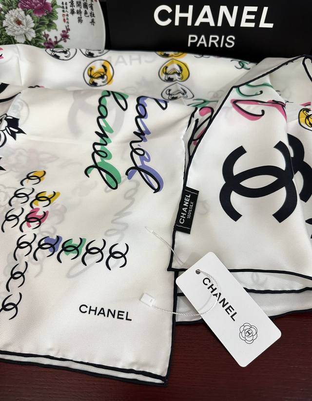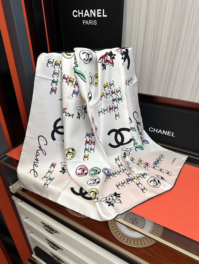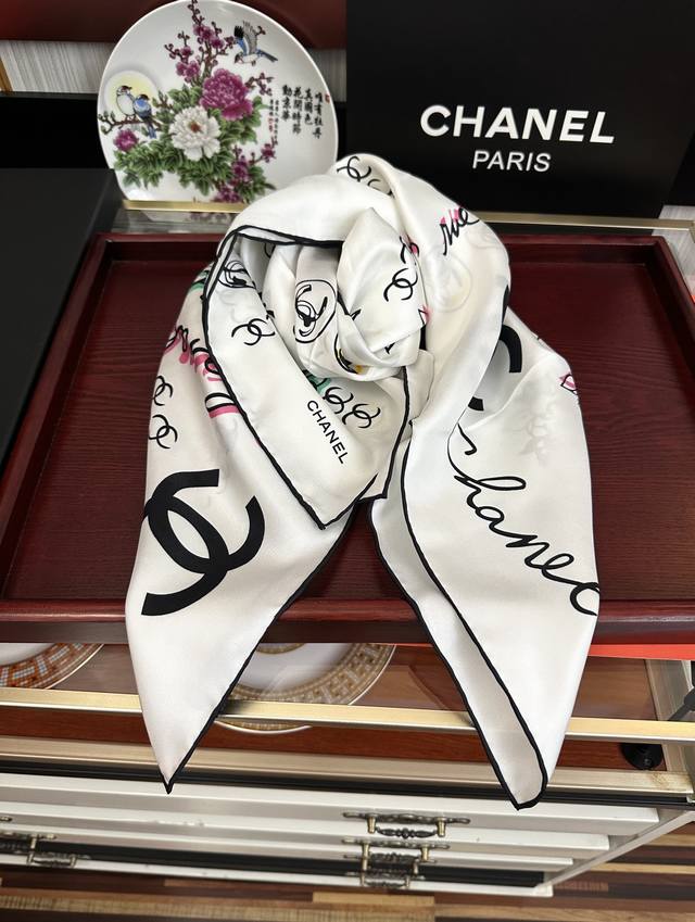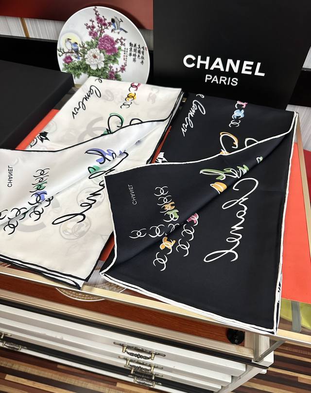 Reversible Chanel 18 momme high version. Chanel is always a classic. This scarf features a cleverly interwoven pattern with the logo, it's simply gorgeous. Love is hidden deep within, showcasing a charming design. This scarf is made of 18mm fabric. A highly recommended romantic piece. Size: 90x90 cm. 100% silk twill, 2 colors.