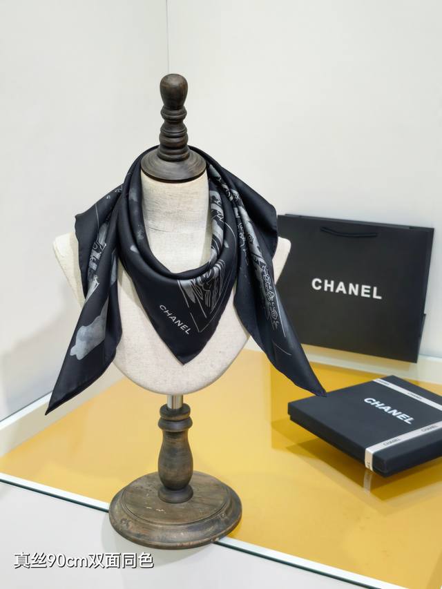 Scc2574 18 momme double-sided 90X90Cm twill silk Chanel Ddd