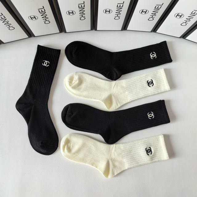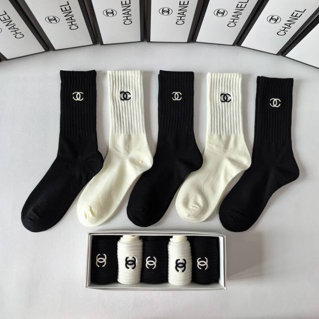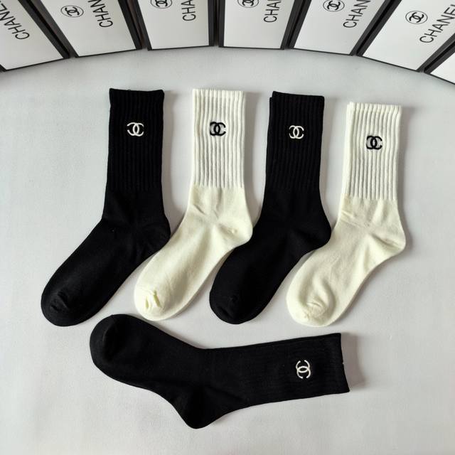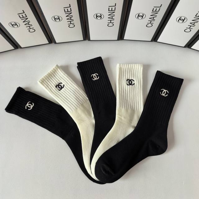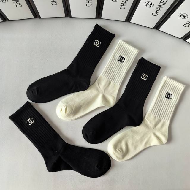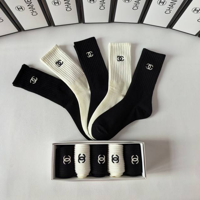 Special boutique packaging DDD Chanel new cashmere embroidered mid-length slouch socks! One box contains five pairs, same style as boutique socks, a must-have for fashionistas, super easy to match DDD