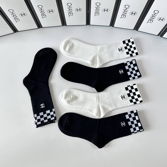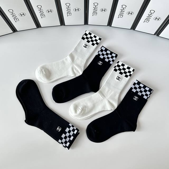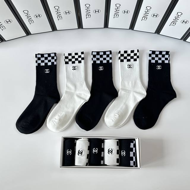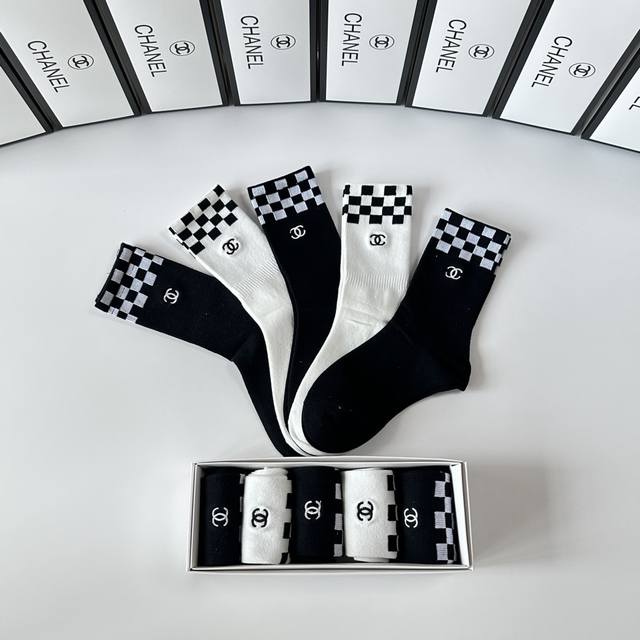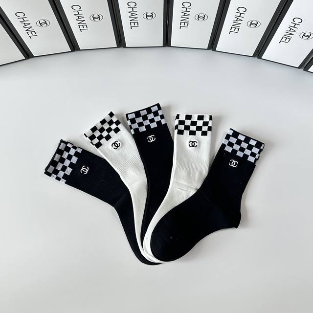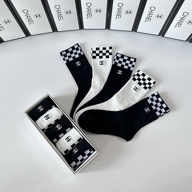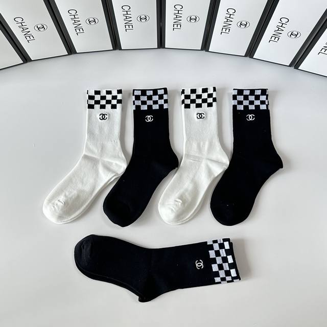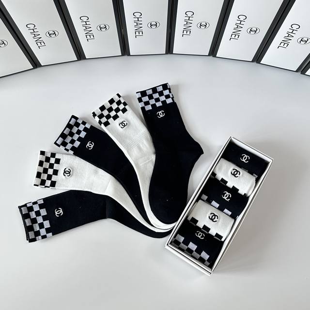 Special boutique packaging DDD Chanel new embroidered mid-length slouch socks! One box contains five pairs, same style as boutique socks, a must-have for fashionistas, super easy to match DDD
