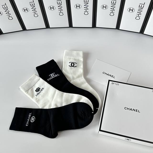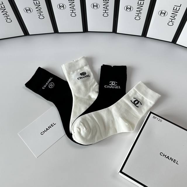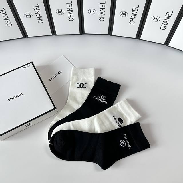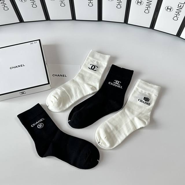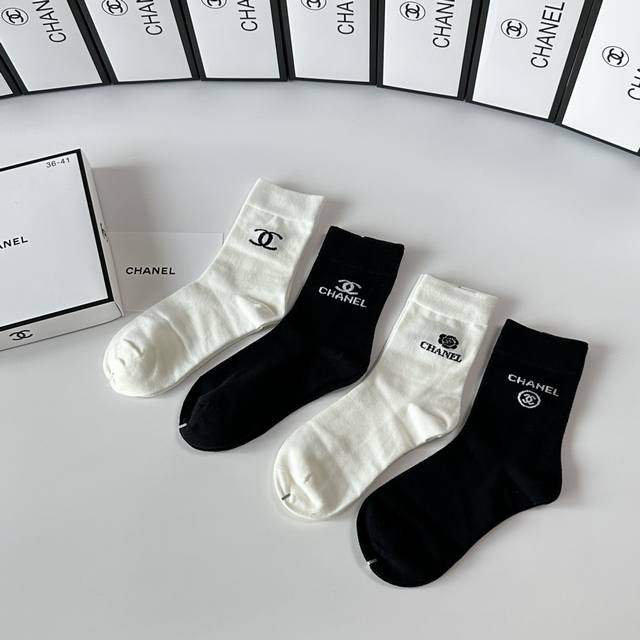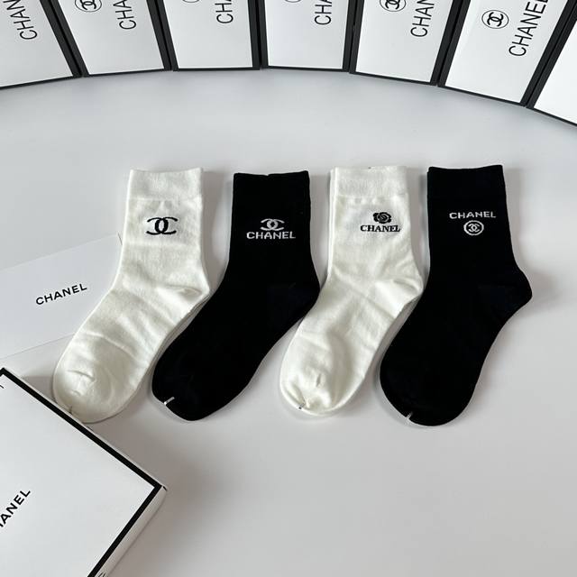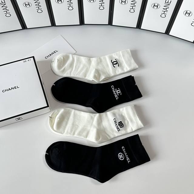 Special boutique packaging DDD Chanel new gift box set of mid-length slouch socks! One box contains four pairs, boutique-quality socks, a must-have for trendsetters, super easy to match DDD