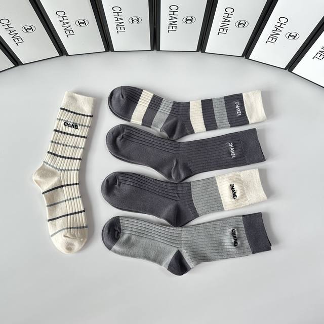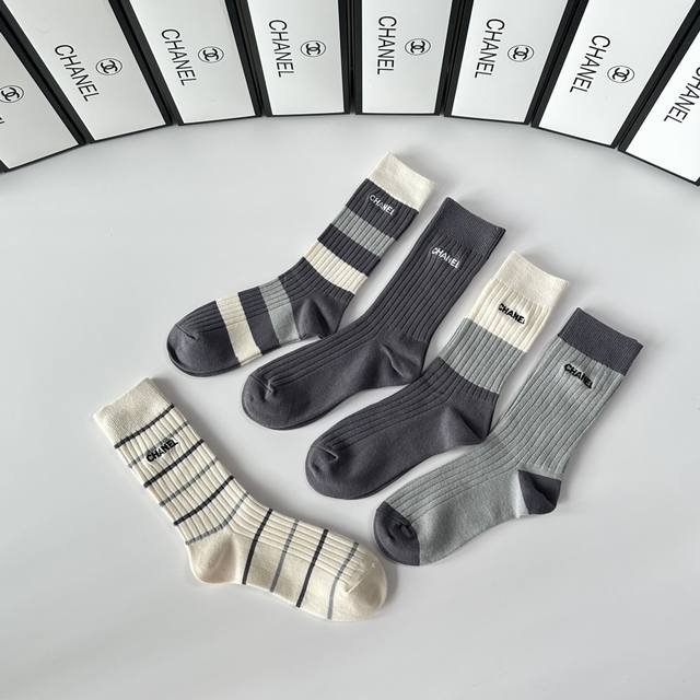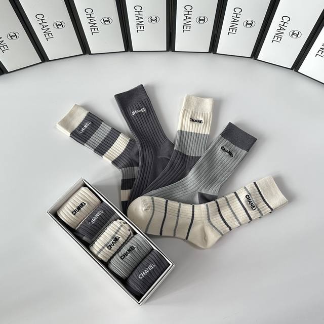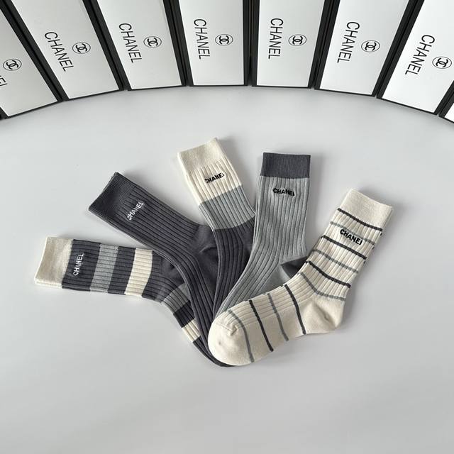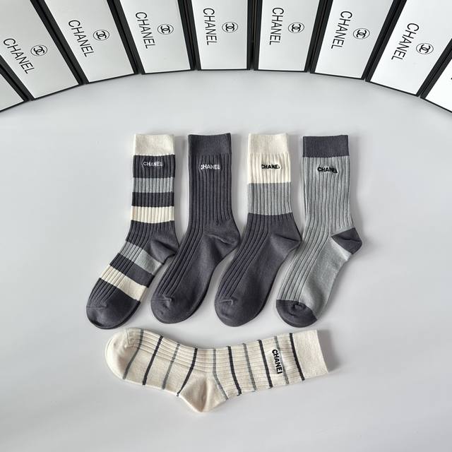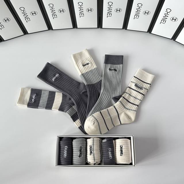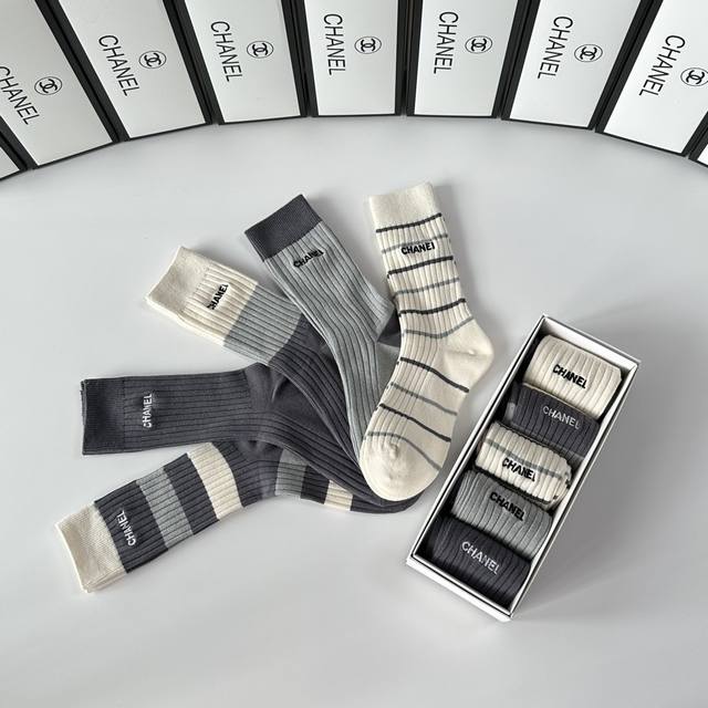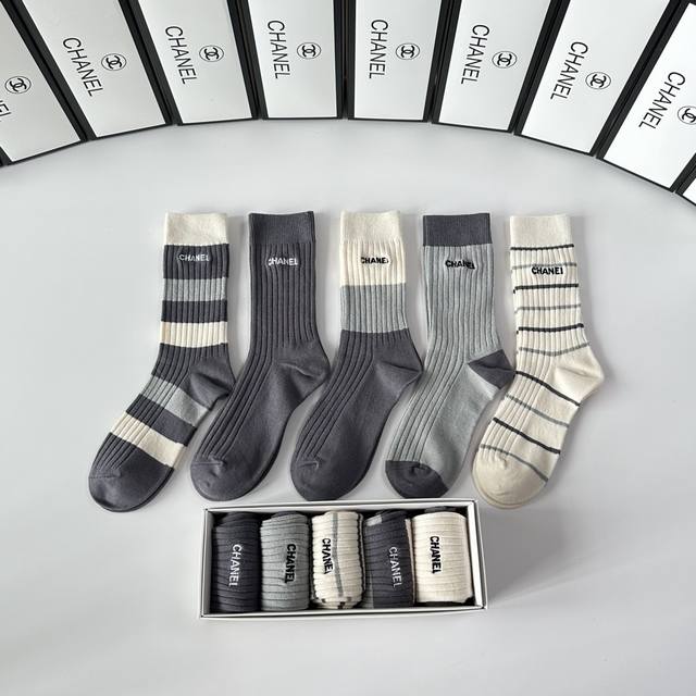 Special boutique packaging DDD Chanel's new double-needle embroidered mid-length slouch socks! Five pairs per box, boutique-quality socks, a must-have for trendsetters, super easy to match. DDD