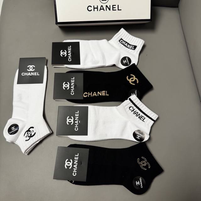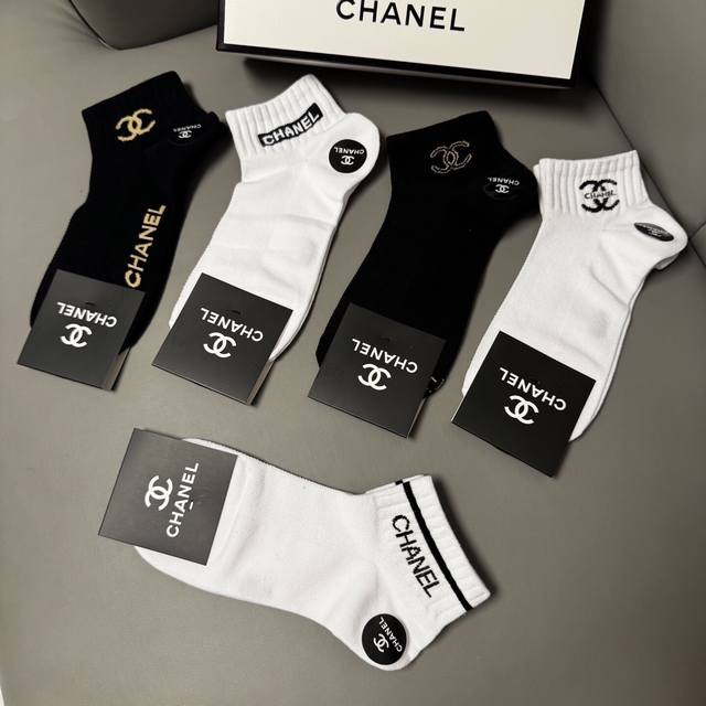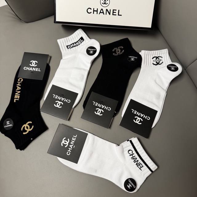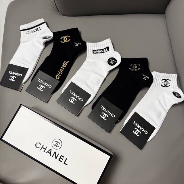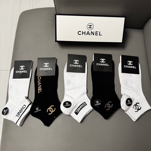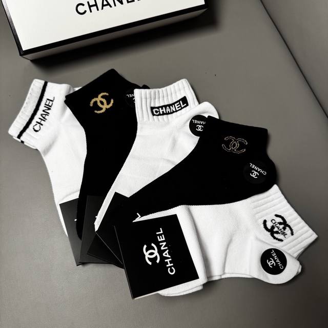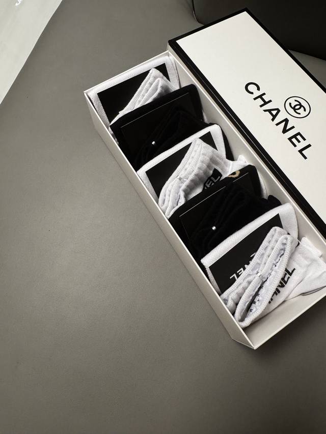 Special Chanel Chanel Ch new women's socks, one box of five pairs of pure cotton material, jacquard classic double C logo, super nice, big brand out, trendy must-have, super easy to match