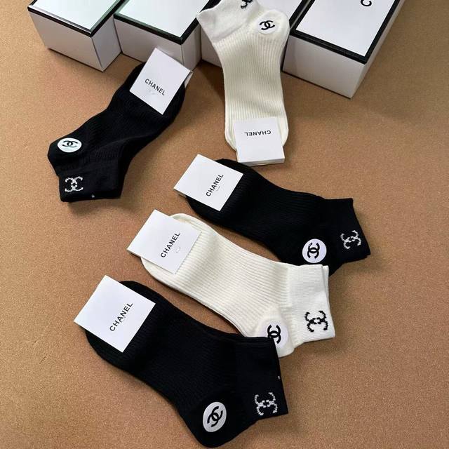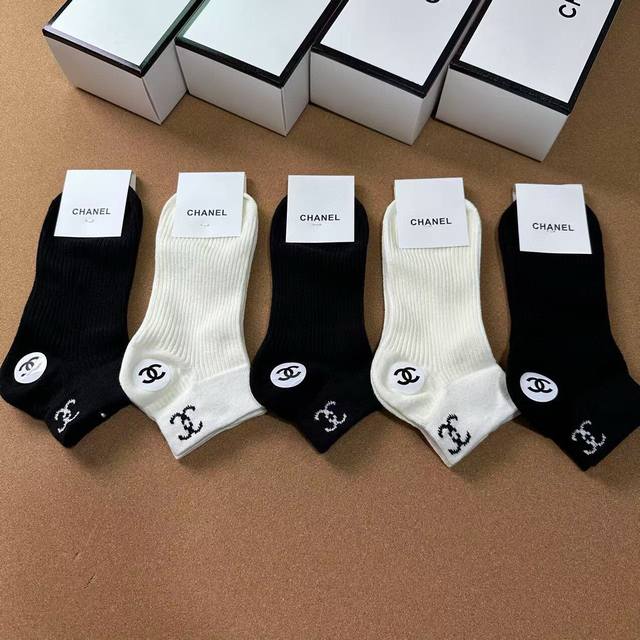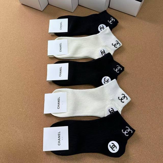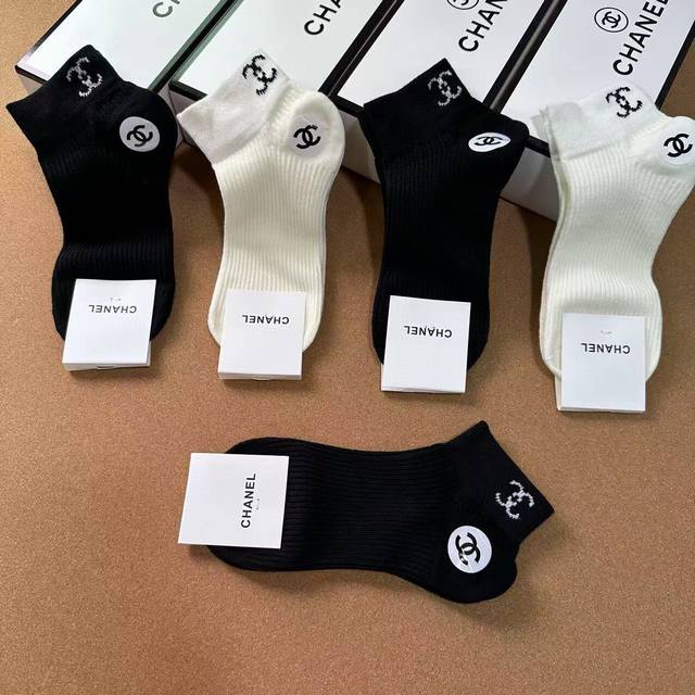Special Chanel Ch's new women's socks, one box contains five pairs, made of pure cotton, with the classic jacquard double C logo, super nice, a must-have for fashionistas, super easy to match.