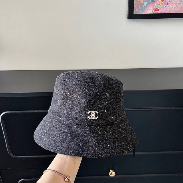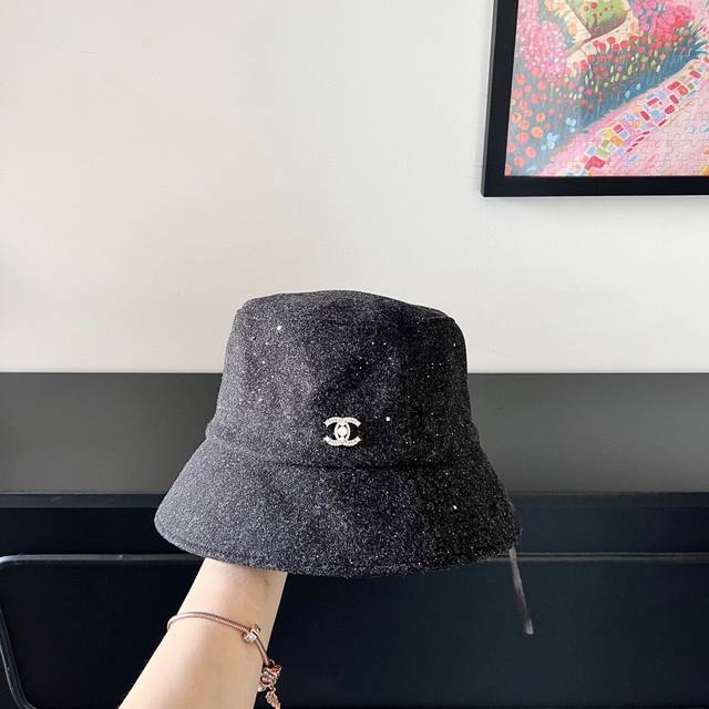 Special dust bag Chanel Chanel 2025 new sequined woolen small Chanel style bucket hat