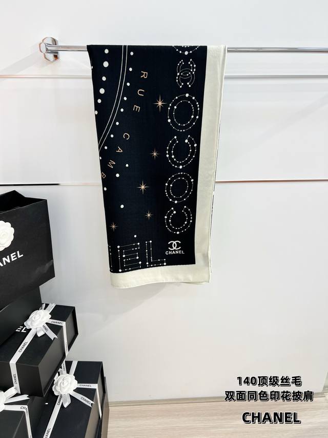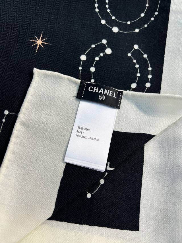 Special Offer: Chanel Fall/Winter 2025 New Arrivals - Zodiac Collection 140 Double-Sided Silk and Wool Shawl, Hand-Rolled Edge Silk and Wool Square Scarf, 30% Mulberry Silk, 70% Wool. This classic piece showcases the essence of powerful and captivating feminine charm. This 140 square scarf is innovatively designed to interpret boundless emotion and freedom, writing a unique narrative of individuality. Size: 135*135 cm. Due to the hand-rolled edges, the indicated size may vary slightly.