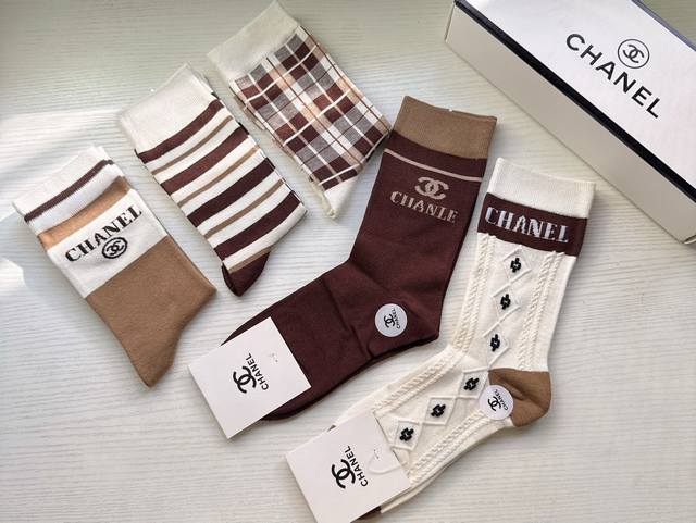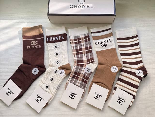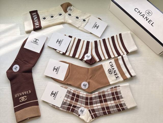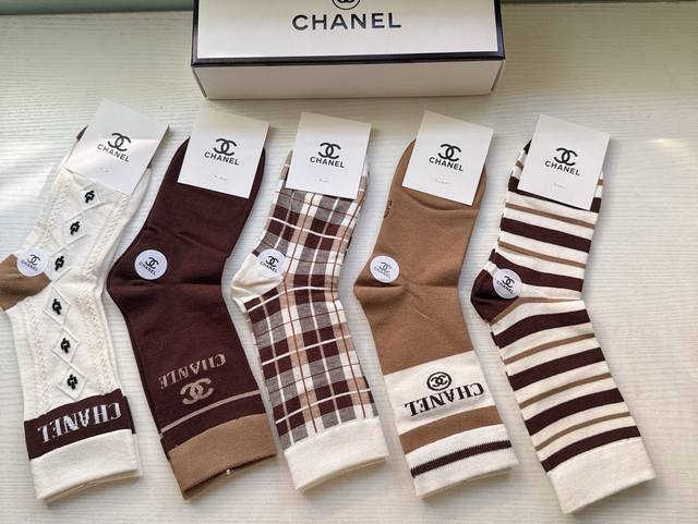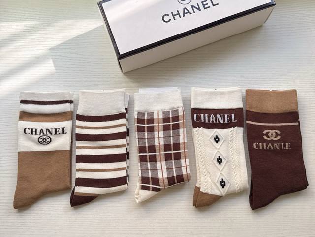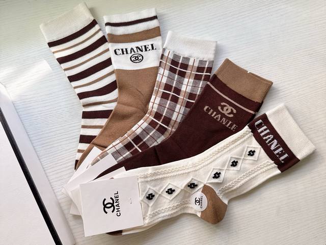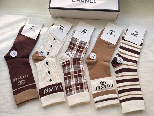 Special Offer: Chanel's newest long socks, five pairs per box, jacquard classic logo, made of bamboo cotton, breathable and comfortable. Super nice and popular small item, a must-have for fashionistas, super easy to match.