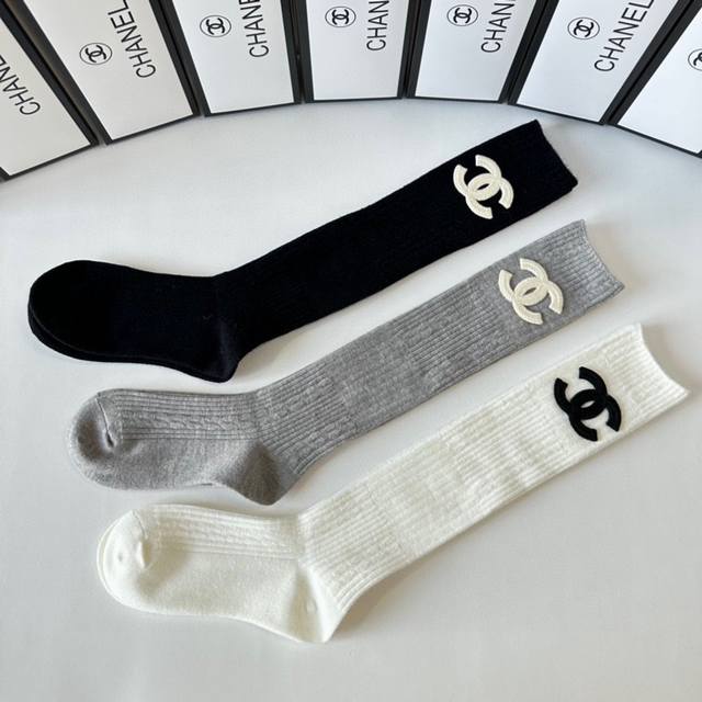 Chanel Chanel hot-selling new double-needle cashmere socks stacked socks! One box one pair, counter synchronized tube socks socks, big brand out, trendy people must-have super easy to match ~
