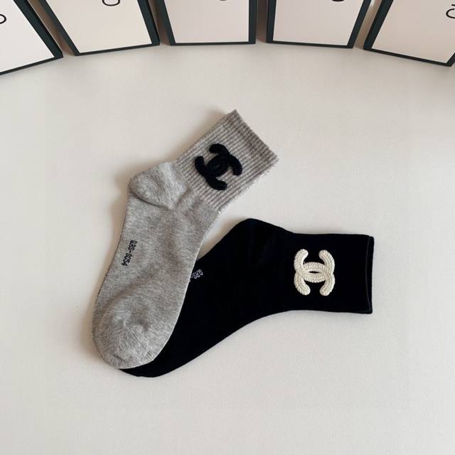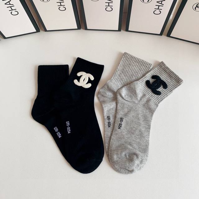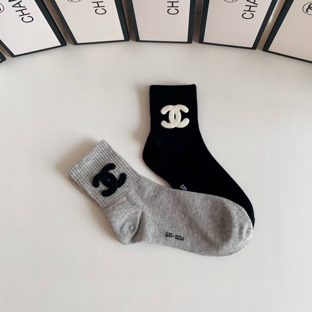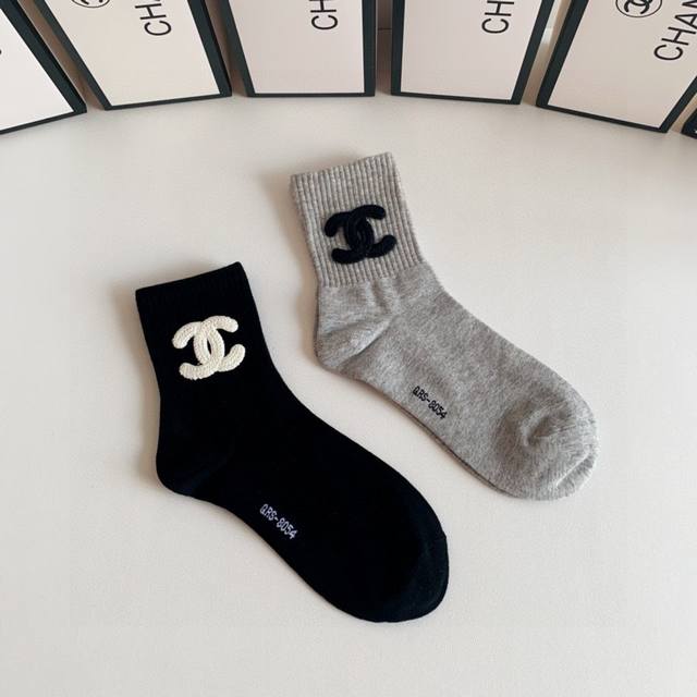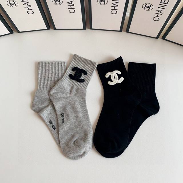 Chanel Chanel Internet celebrity hot style # new socks mid-length stacked socks! Two pairs per box, counter synchronized tube socks, big brand out, trendy people must-have super easy to match ~