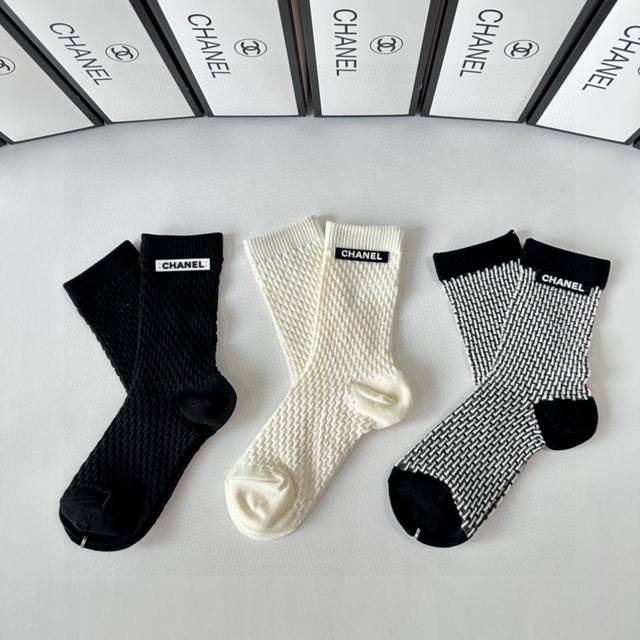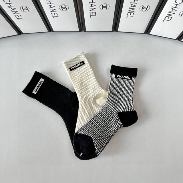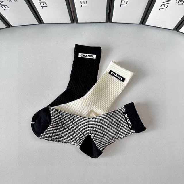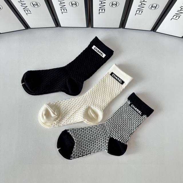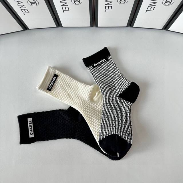 Chanel New Classic Mid-Length Socks with Accessories! Three pairs per box, same style as in boutiques, a must-have for trendsetters, super easy to match.