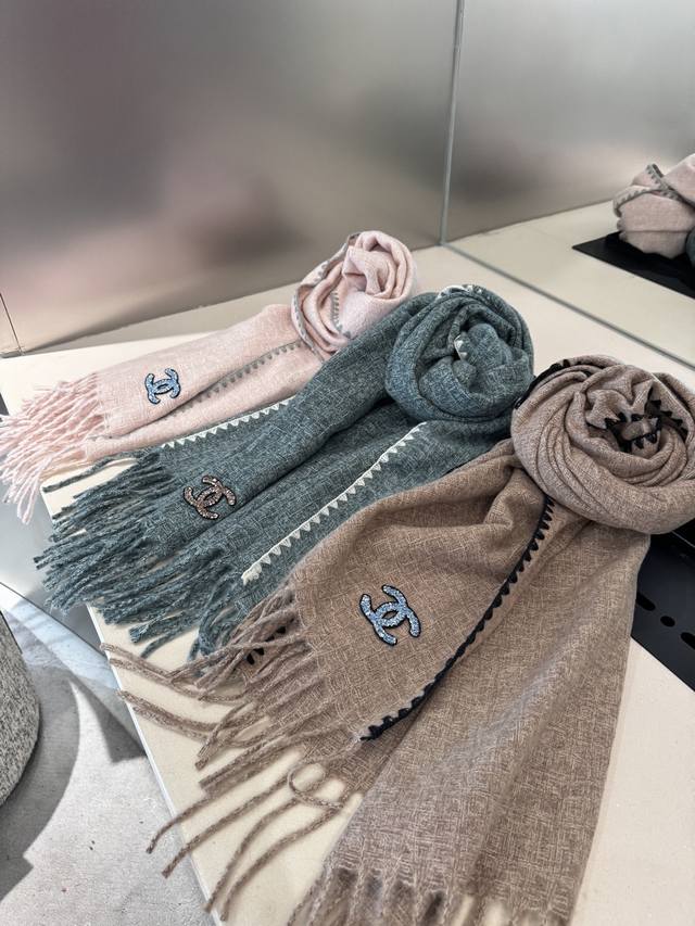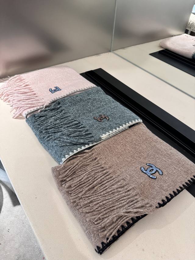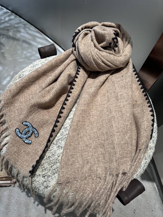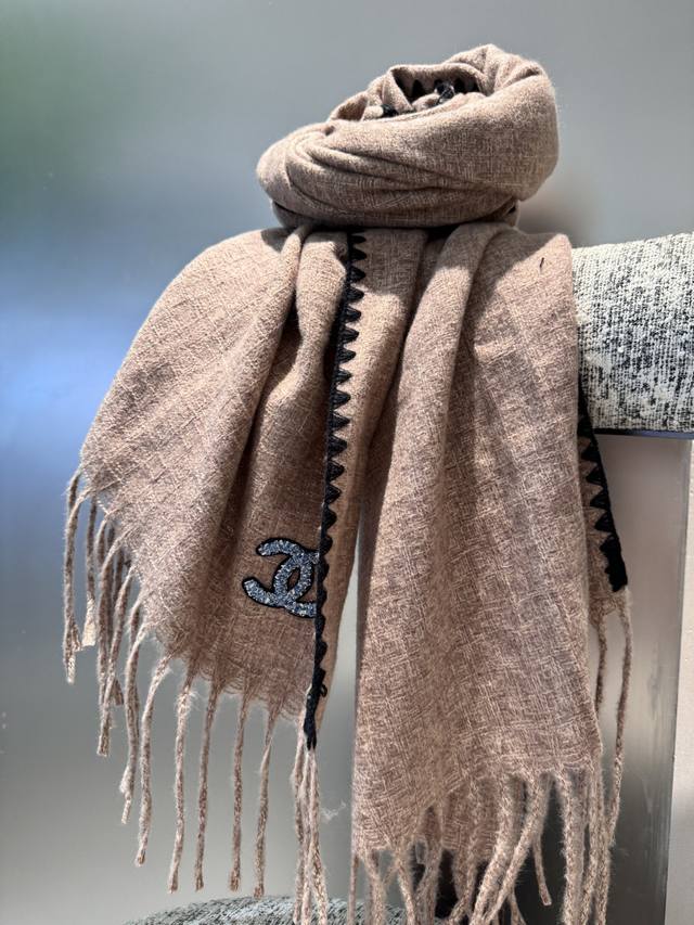 Stunning new Chanel scarf! Highly recommended! Excellent quality! Apparently, it's incredibly hard to find!! The workmanship is exquisite, it has a substantial weight, and our price is truly amazing value! The best thing about this scarf is its incredible softness and comfort, and its airy, fluffy texture!!! The quality is simply gorgeous! Limited quantities available, not guaranteed to be in stock at all times~ Grab it if your budget allows!! It suits everyone, exudes elegance! Anyone who wears it will look sophisticated!! We really hope you don't miss out on this style. Size: 70cm.