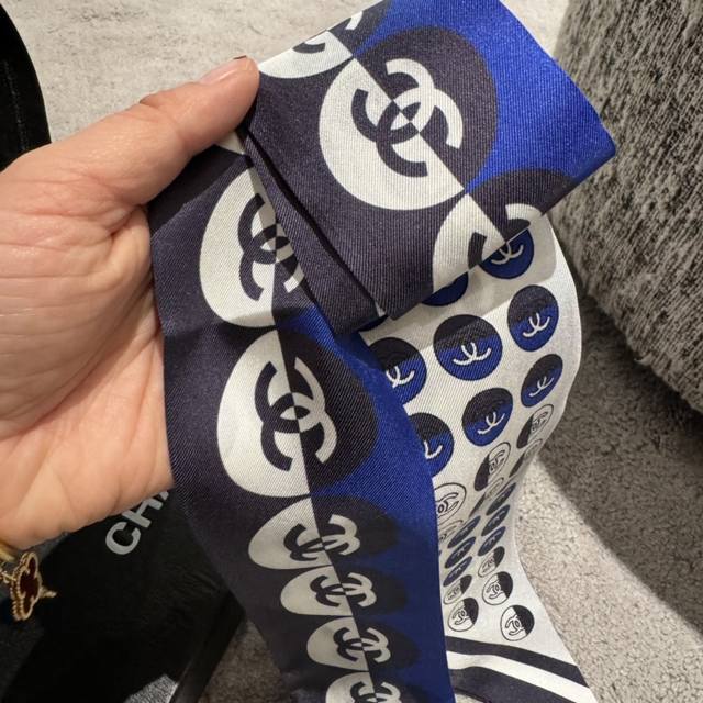 Super beautiful Chanel scarf! Double-layered silk! Multiple uses: tie it to your bag, use it as a headband or neckerchief