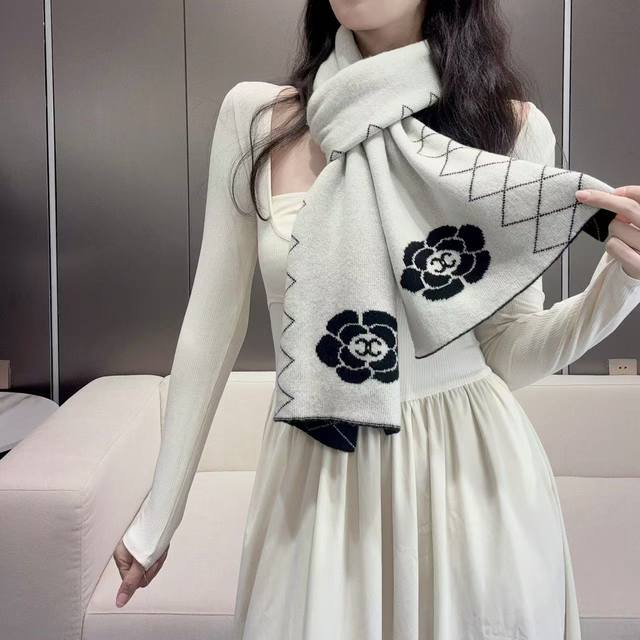 Super Heavyweight Chanel New Arrival! This super heavyweight Chanel scarf is absolutely gorgeous! The quilted and camellia knit is simply too sophisticated! The classic double C logo is absolutely stunning! Chanel truly understands women's psychology and aesthetics! Key point: the tiny double C logo