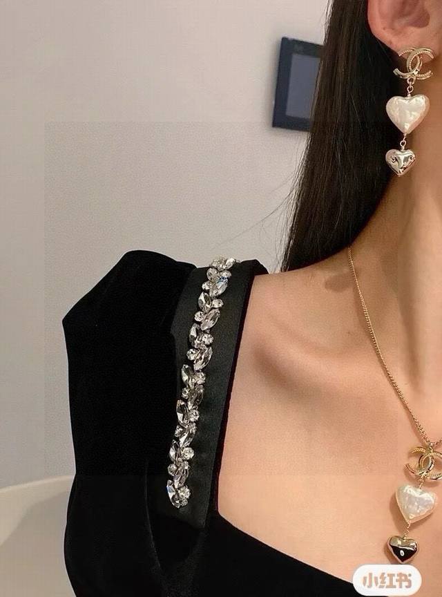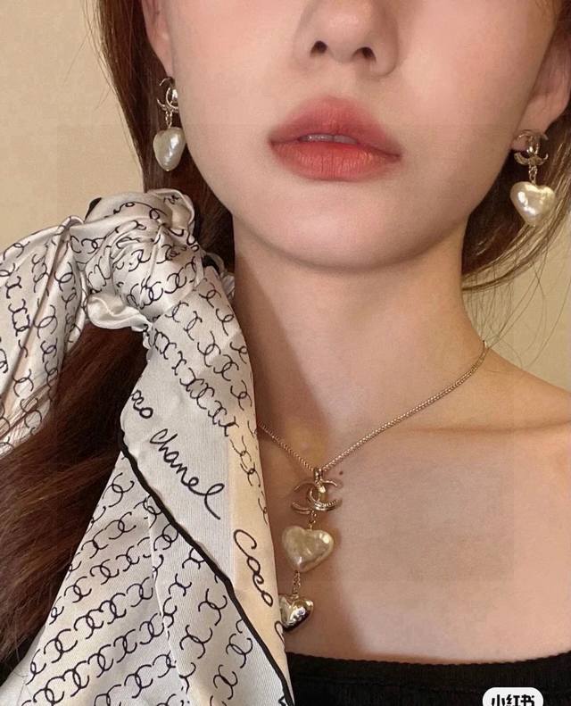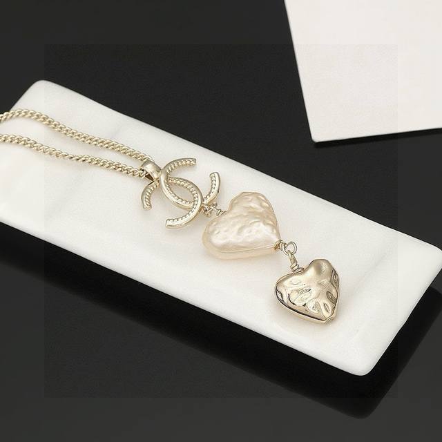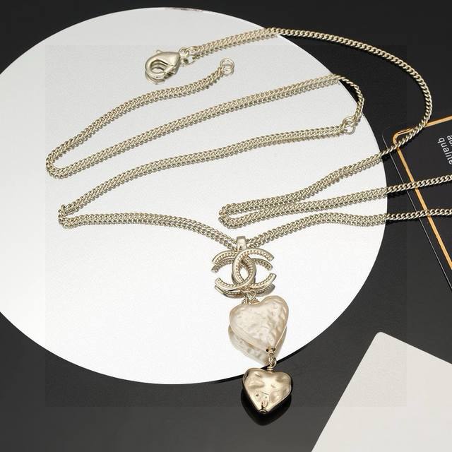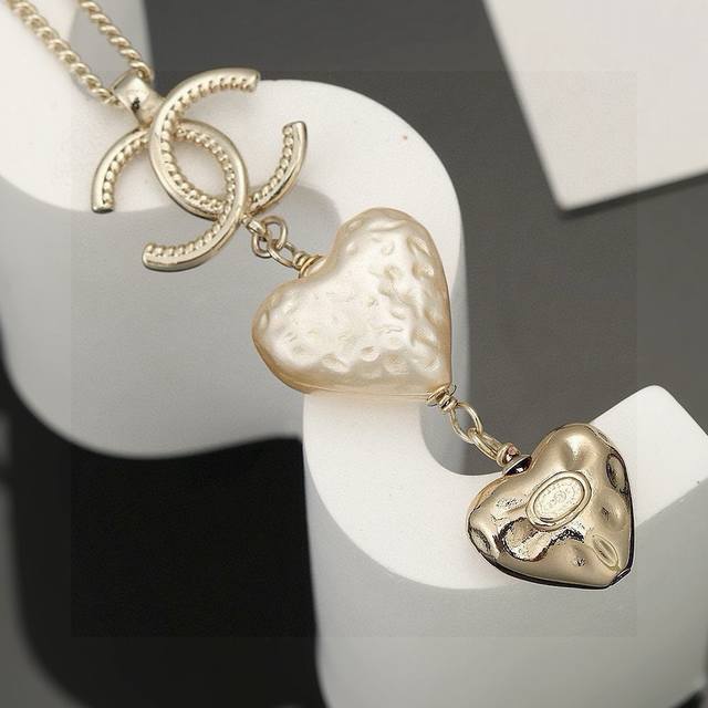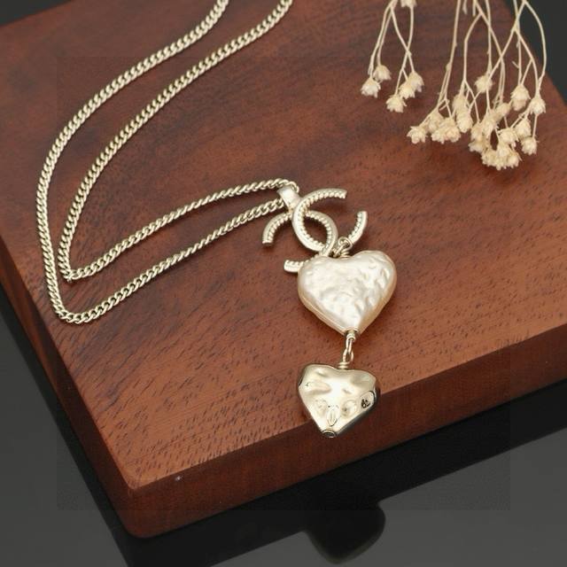 The Chanel Pearl Heart Peach Necklace has a simple design yet stylish. The perfect collision of the elegance of pearls and the texture of metal fully reflects the style of the big brand. Necklace