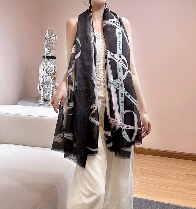 The latest and most coveted Chanel collection! Once again, it exudes a high-end feel!! A sophisticated and elegant style! The colors are understated, the patterns are meticulously crafted, and it looks absolutely stunning on!! A versatile piece for everyday wear, it can be styled in a youthful way. It can elevate any ordinary outfit, offering endless versatility!! Made of cashmere, it's incredibly soft, lightweight, and comfortable! The long scarf design is also easy to wrap and style! Size: 140cm * cm DDD