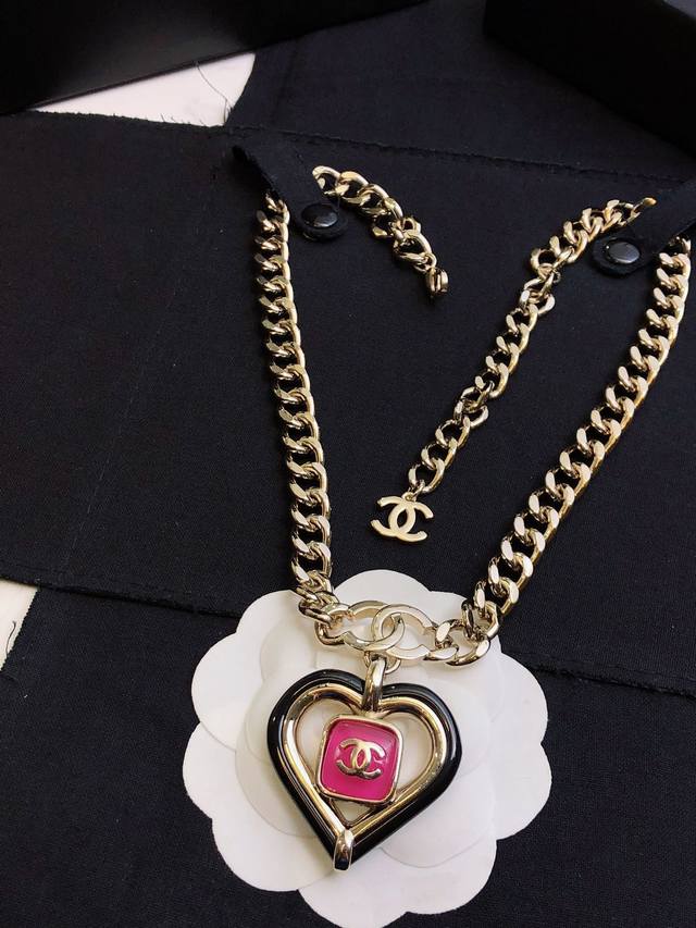 The new model is expected to become this season's hot item. It is so beautiful that it is stunning. *Chanel's new heart-shaped acrylic double C pendant necklace is the same as the Chanel necklace in the counter. It is made of 18K brass electroplating.