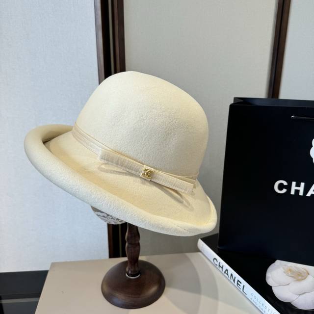 / White Chanel Autumn/Winter Wool Bucket Hat, 100% Wool Fabric, 57cm Head Circumfe