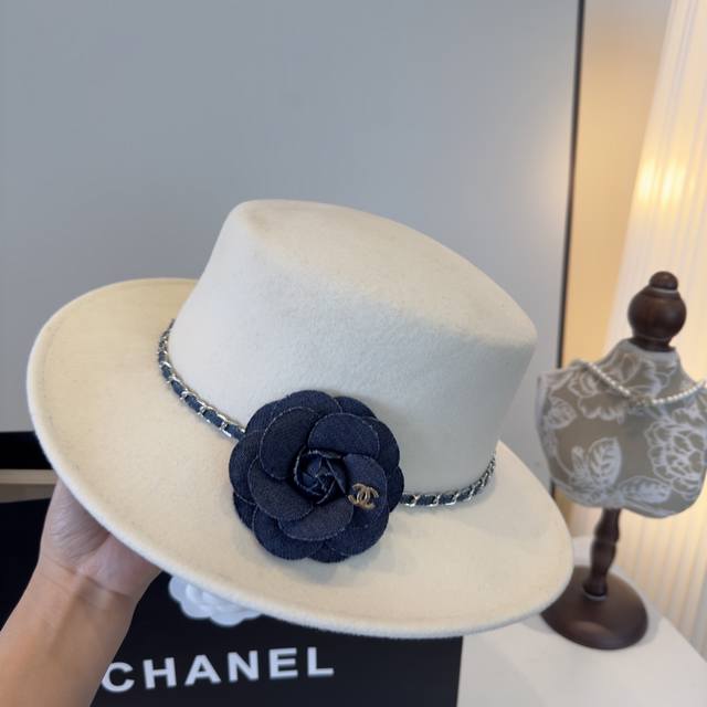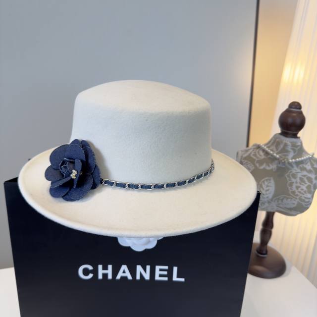 / White Chanel new autumn/winter wool flat top, 100% wool fabric, head circumferen