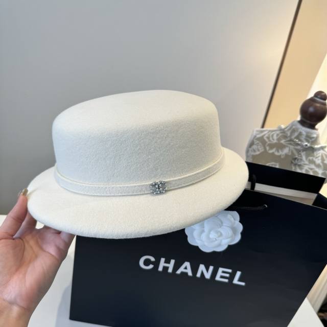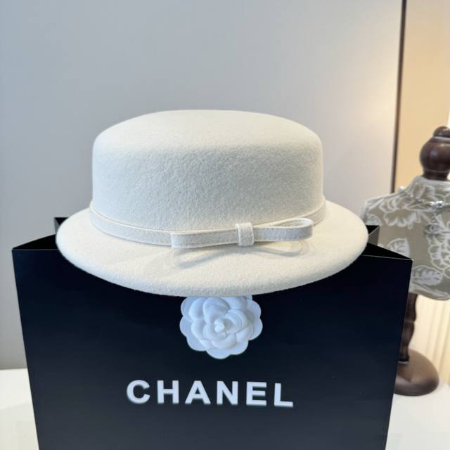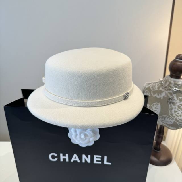 White DDD Chanel New Wool Hat, Berets, Super Goddess Style, Haute Couture Hat, 100% Wool Fabric, Head Circumference 57cm DDD