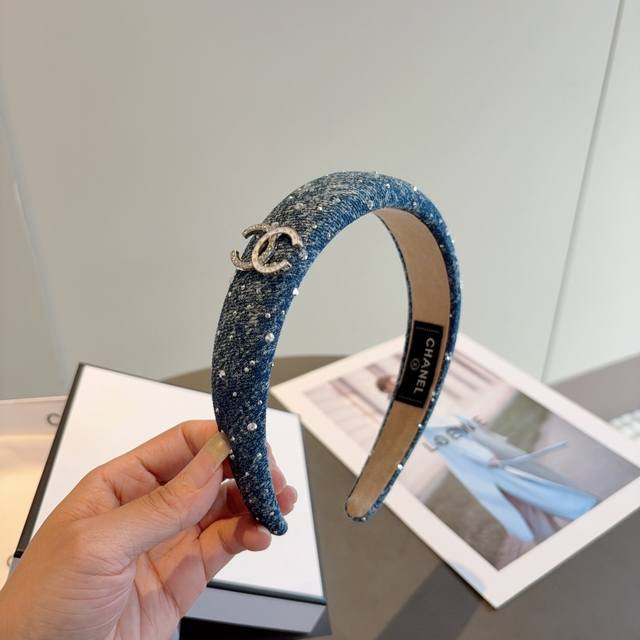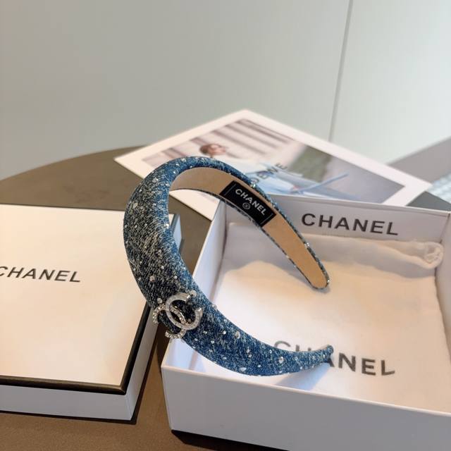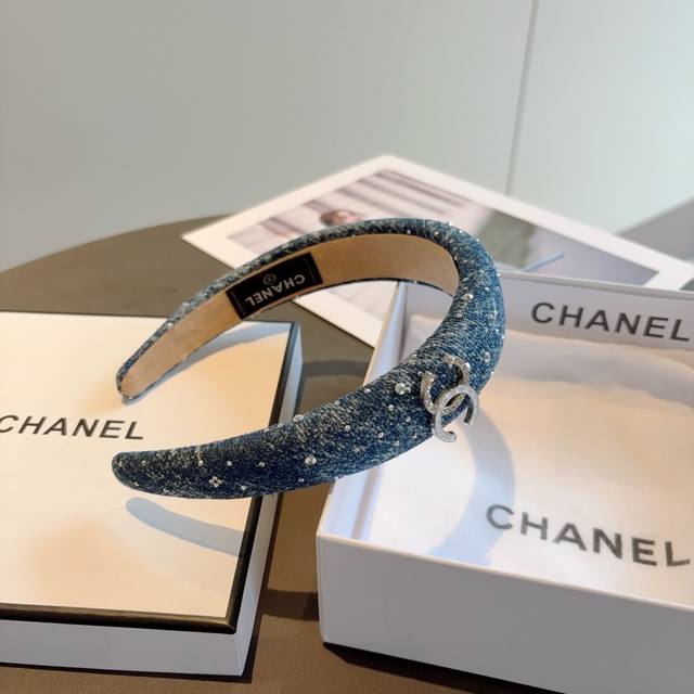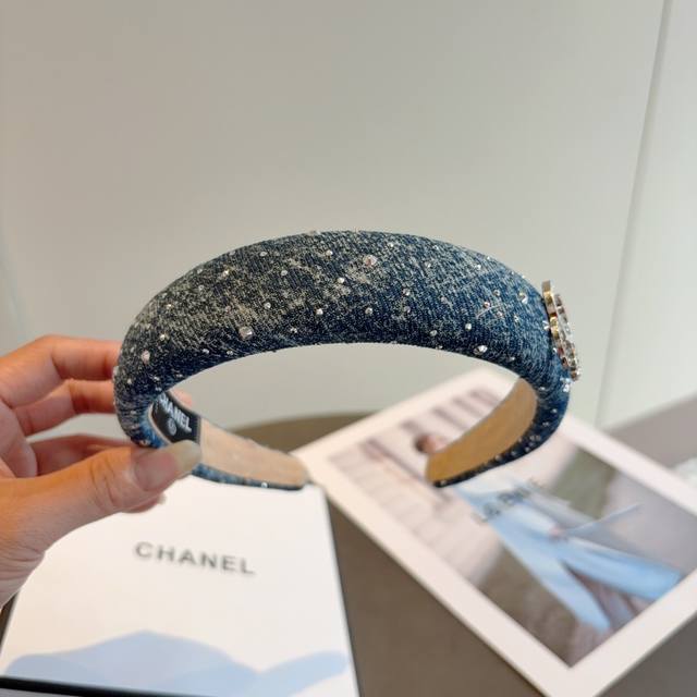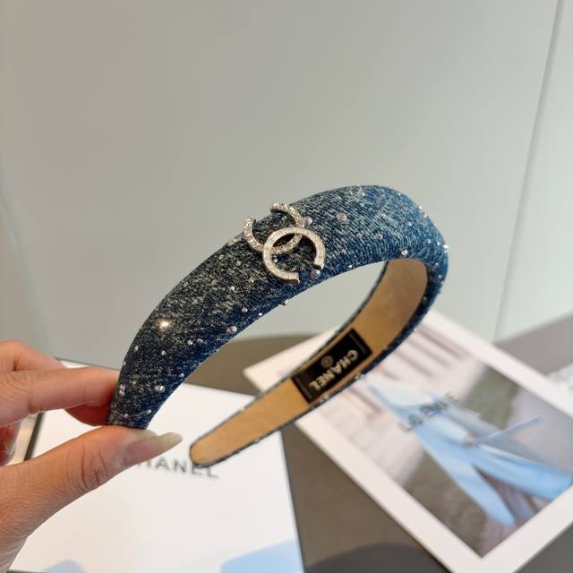 Chanel Chanel new denim with diamond small Chanel headband, retro headband, popular online recommended with high-end materials, super exquisite, fashionable and versatile.