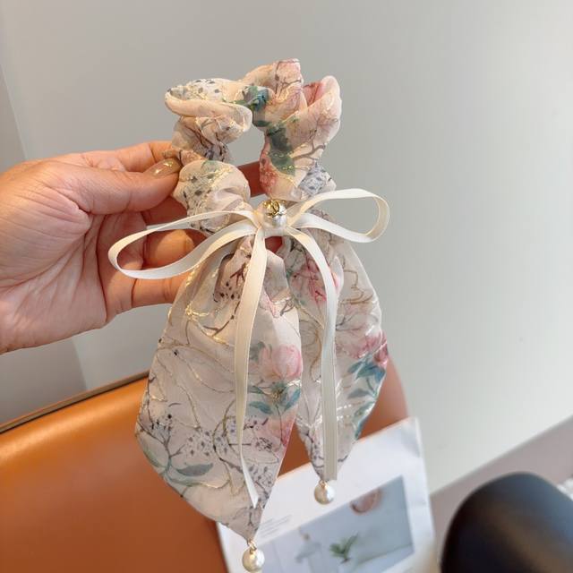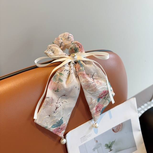 Chanel Chanel vintage embroidered ponytail hairband butterfly colon ring, high-end Korean version of the small Chanel style rubber band, classic flower design!