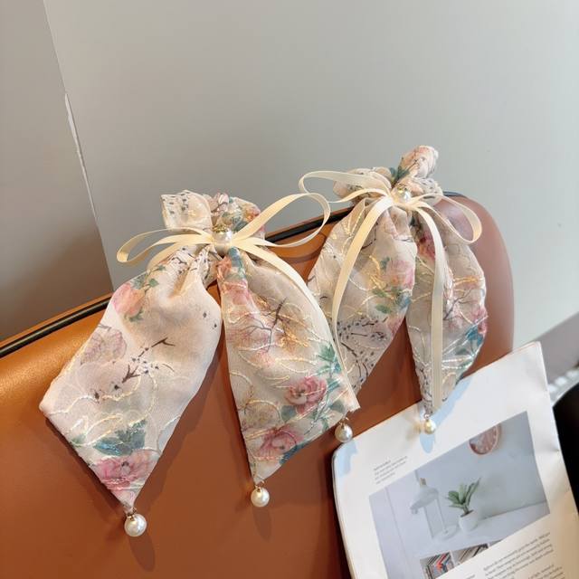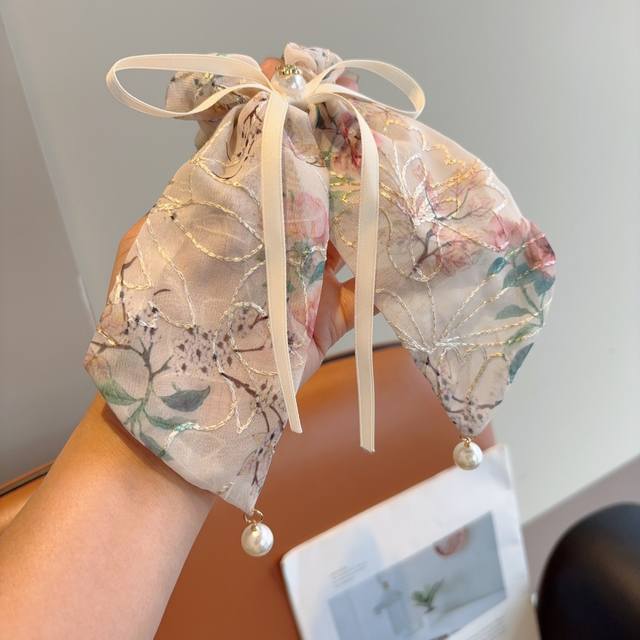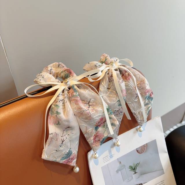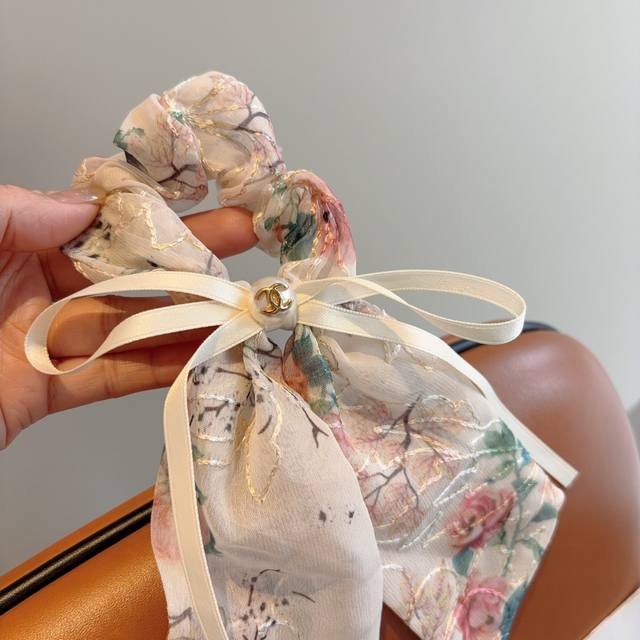 Chanel Chanel vintage embroidered ponytail hairband butterfly colon ring, high-end Korean version of the small Chanel style rubber band, classic flower design!