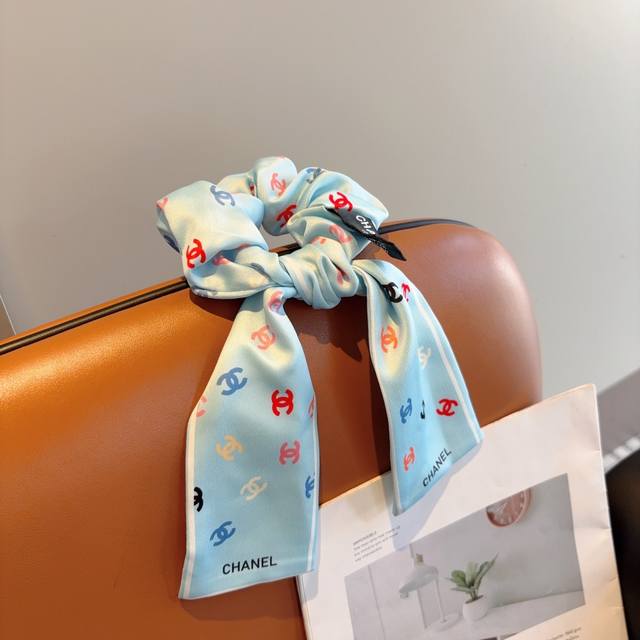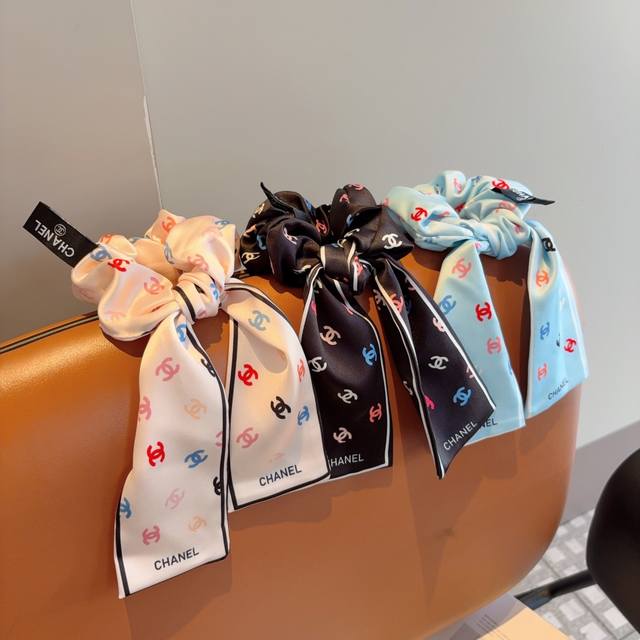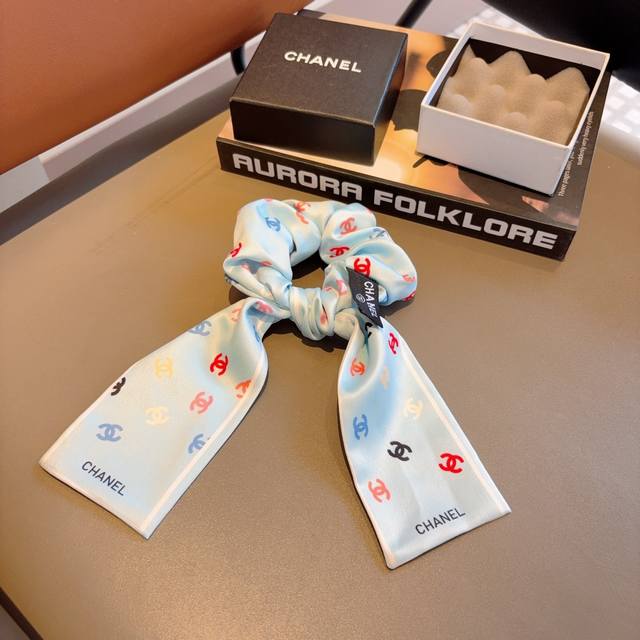Chanel letter ribbon ponytail hair ring butterfly colon ring, high-end Korean rubber band, classic flower design, high-end atmosphere, celebrity style,