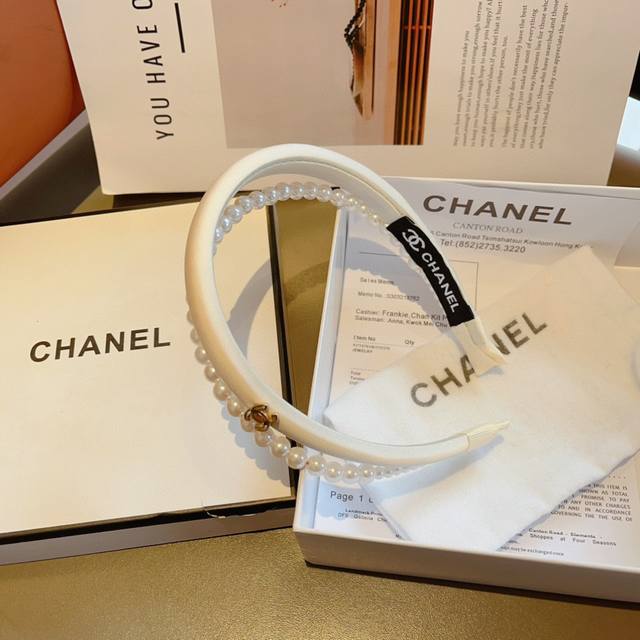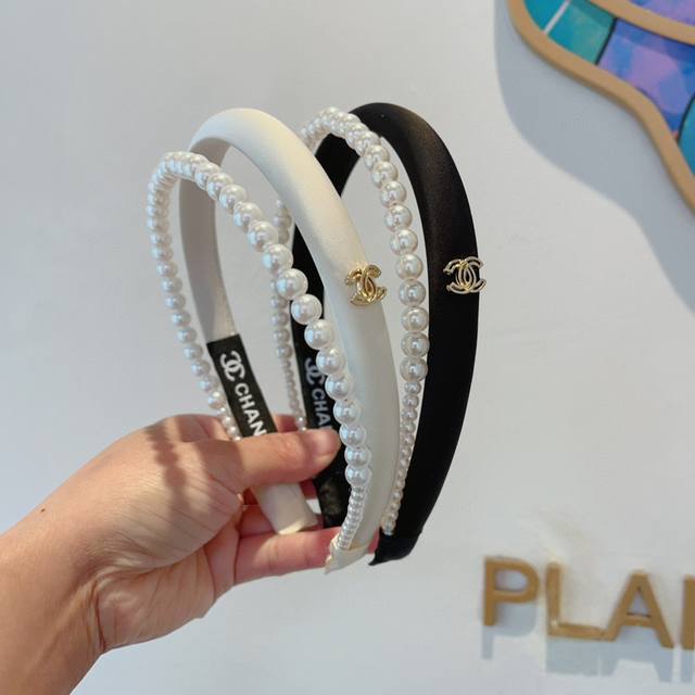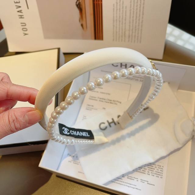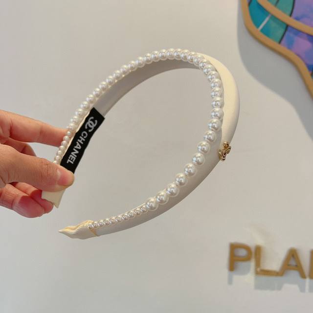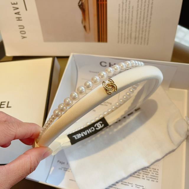 Chanel's latest small pearl headband, a new product that makes your face look small, a hot-selling item recommended by internet celebrities with a high-end double C logo, super exquisite, fashionable and versatile!