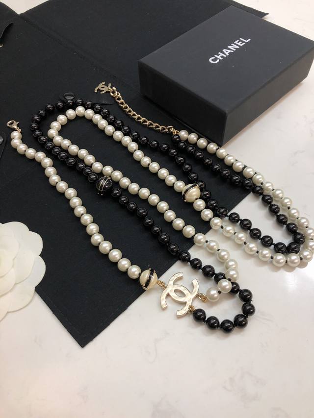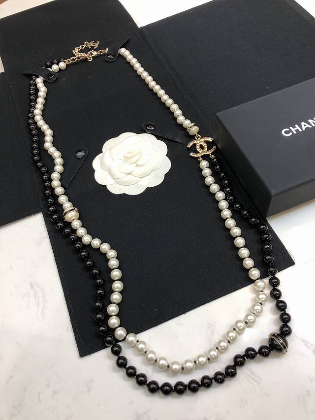 Autumn/Winter Double Layer Chanel Sweater Chain, Black and White Pearl Chain, Original Quality, High-Quality Item, Easily Recycled from Boutiques, Authentic Chanel Classic Sandblasted Texture Gold Pearl Sweater Chain, Beautiful, Authentic 9Xxx, This is Definitely a Must-Have for Beginners in Long Chains...