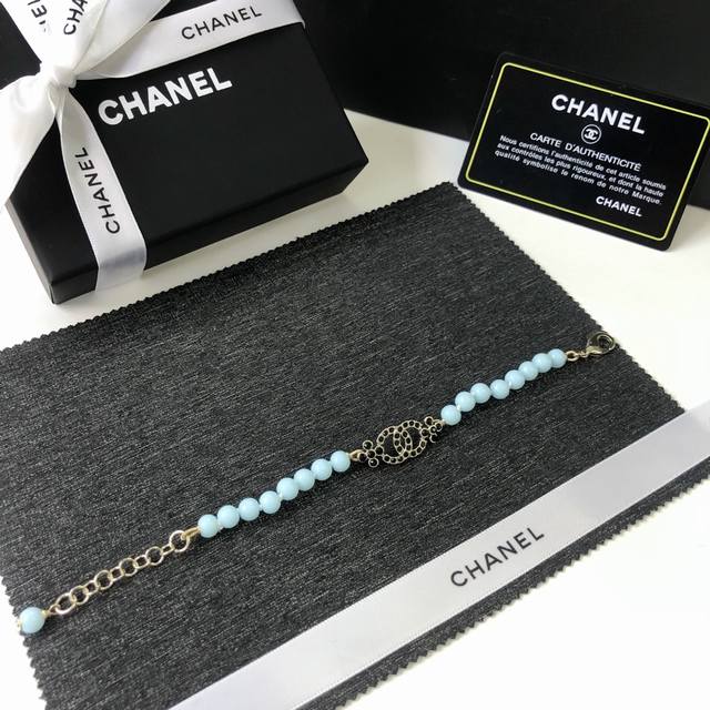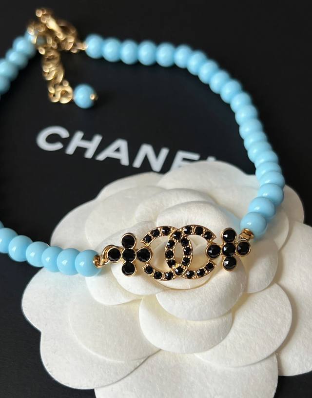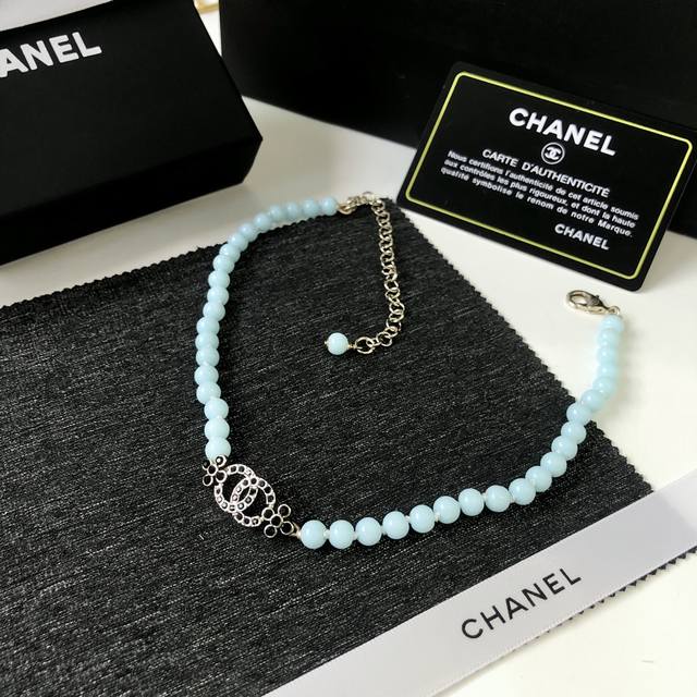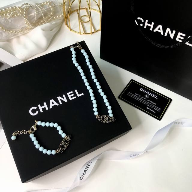 Bracelet Necklace Chanel blue glass bead flower set Top-grade electroplating in