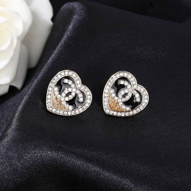Chanel 2023 New Heart Earrings, Available Now at Boutiques; Double C Necklace, Exquisitely Crafted, Made of the Same Brass Material as the Original DDD