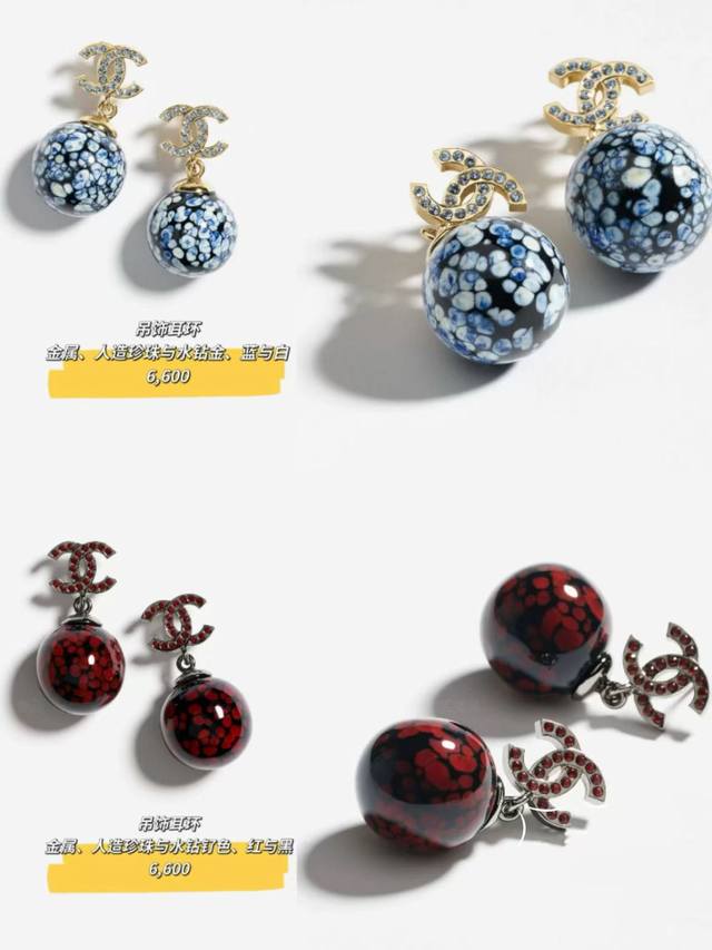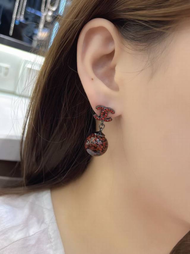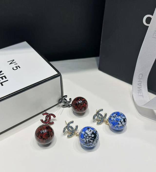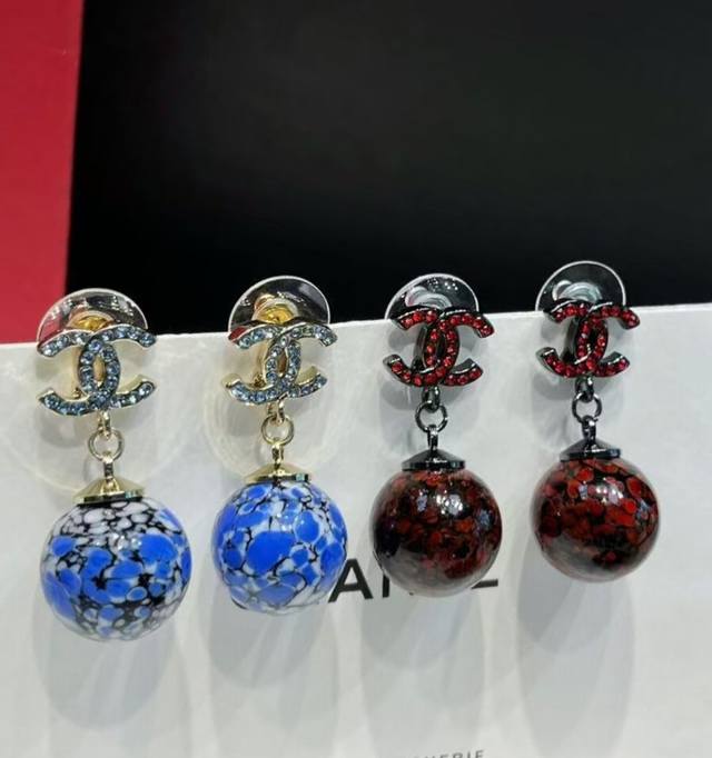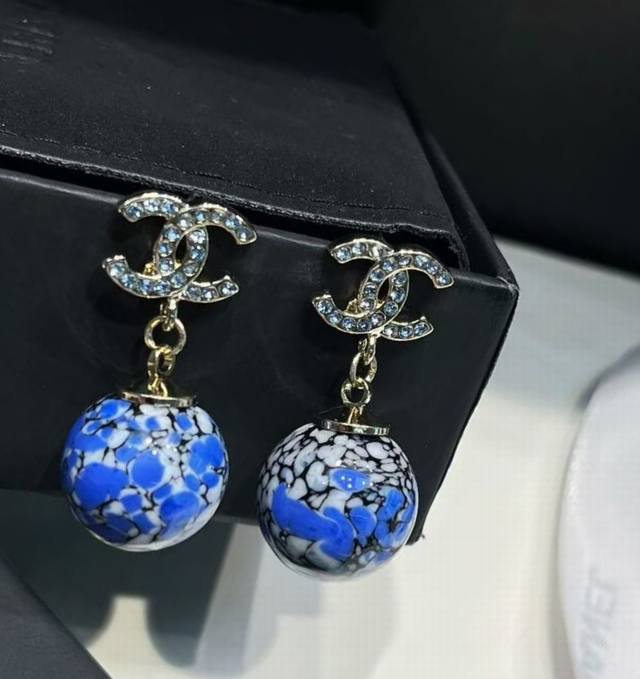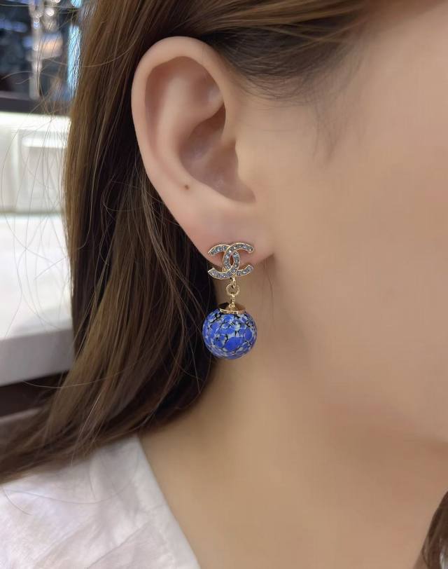 Chanel 25 Blue and Red Ceramic Teardrop Diamond Letter Earrings New Jewelry - Love at First Sight! Original Clear Imprint. The new Chanel 25 jewelry is stunning! Classic elements are given a fresh twist. The sparkling diamonds paired with metal are incredibly stylish. Each piece is exquisitely beautiful, versatile, and eye-catching. Who doesn't love the Chinese style blue and white porcelain earrings? Full diamond double C design with a blue and white porcelain sphere underneath