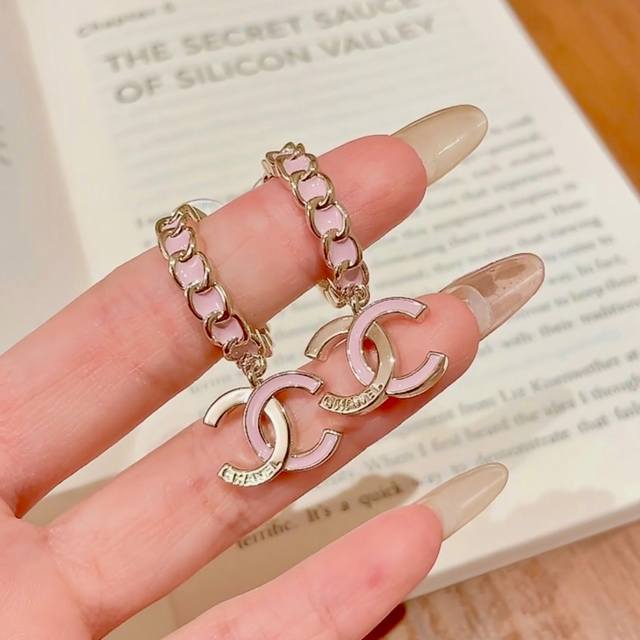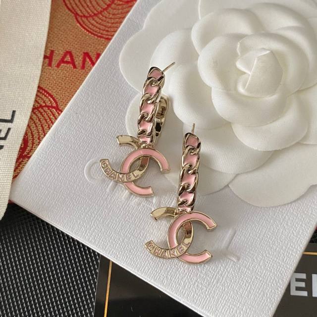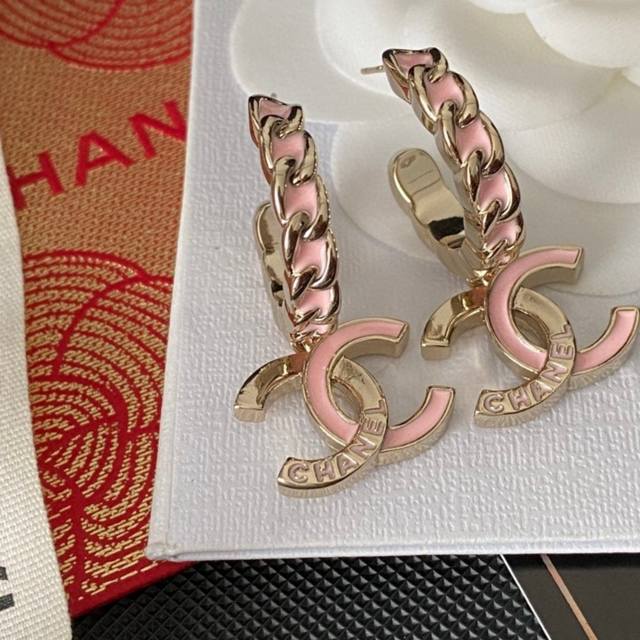 Chanel 25B pink letter cord hoop earrings are embellished with pink glass on one side, and the other half features a glossy logo embellishment with a double C. The hoop chain design is complemented by pink glass. Simple, elegant, and stylish! The combination of gold powder and chain elements creates a sweet, elegant look with a touch of casual flair! [Shy R] I'd call these "girly must-have" earrings. [Colorful R] Pink enamel fills the hollowed-out area in the chain. The delicate pink enamel, combined with the elegant beige gold chain, is playful and adorable. [Slant-Eye R] The classic double C logo is also finished in half beige gold and half pink enamel, radiating a youthful, fashionable, and lively girlish vibe that's truly irresistible! [Wow R] Add a unique touch of romance to any outfit! These are the go-to jewelry for those who appreciate a subtle touch , easily adapting to any style and making them stylish and effortless for everyday wear! They make you feel even more gentle and elegant!