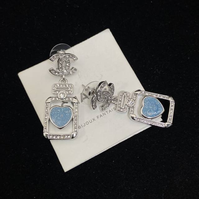 Chanel 25P New Double C Blue Perfume Bottle Earrings