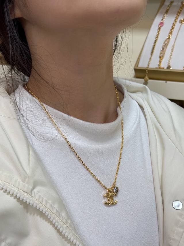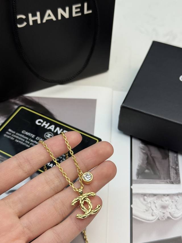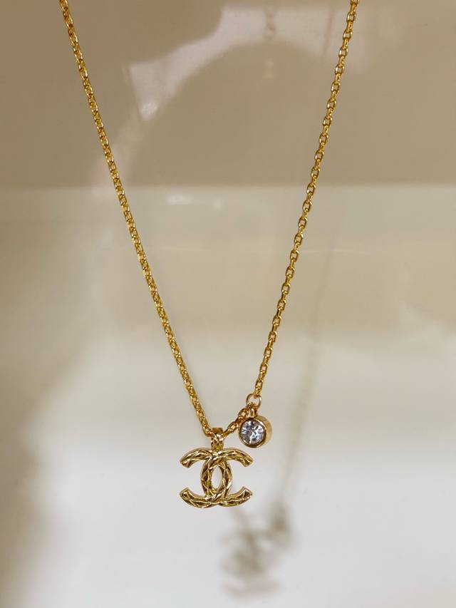 This Chanel 26p gold quilted Cc necklace is made of gold-plated metal, featuring a delicate chain and a diamond-encrusted pendant, exuding elegance and distinctive style. The double C logo symbolizes luxury and fashion. The chain length is moderate, making it suitable for wearing alone or layered, and easily paired with various styles of clothing. Whether for everyday wear or formal occasions, it enhances your temperament and showcases your taste, making it a must-have classic item for Chanel fans