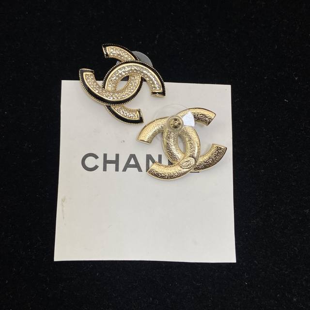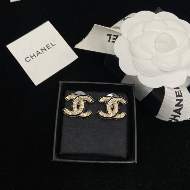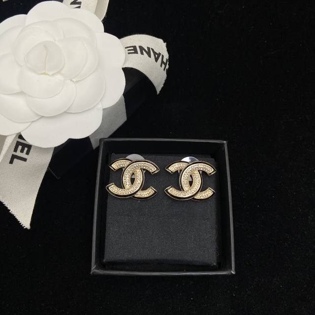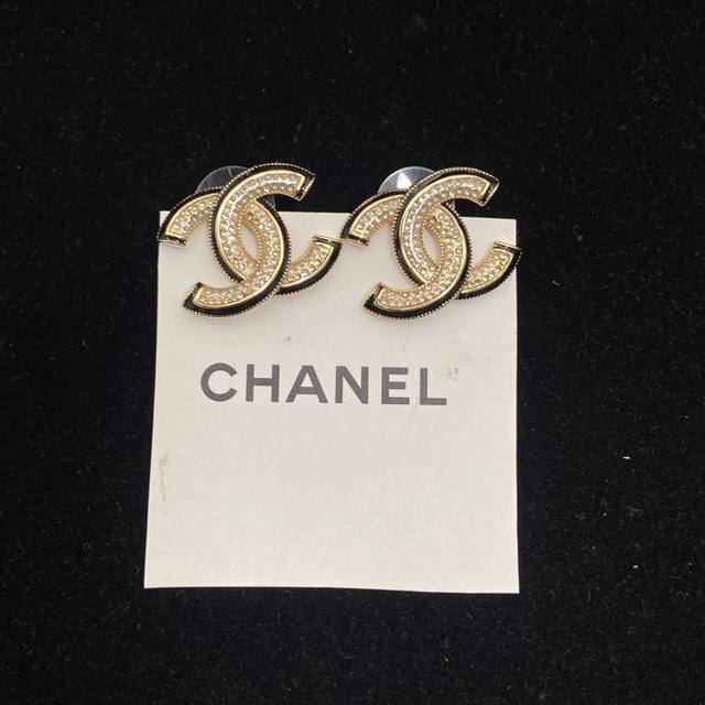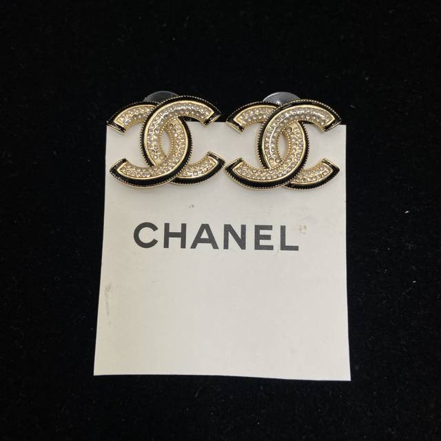 / Chanel Black Enamel Gold Double C Stud Earrings The black and gold combination e