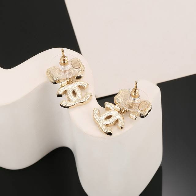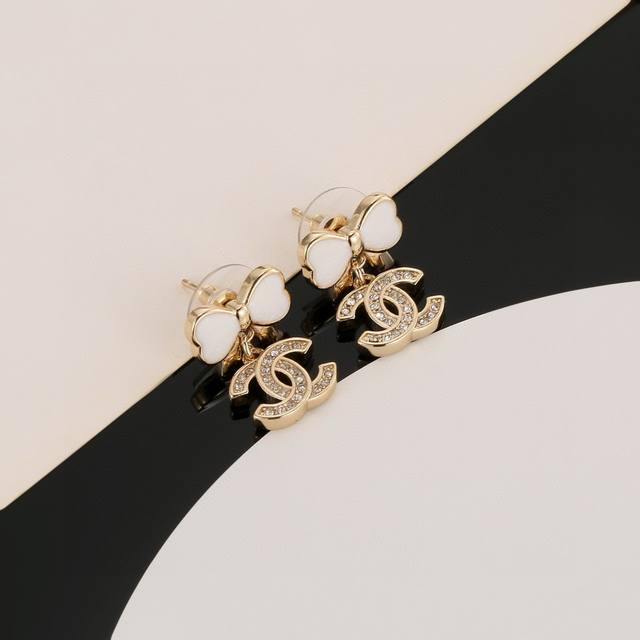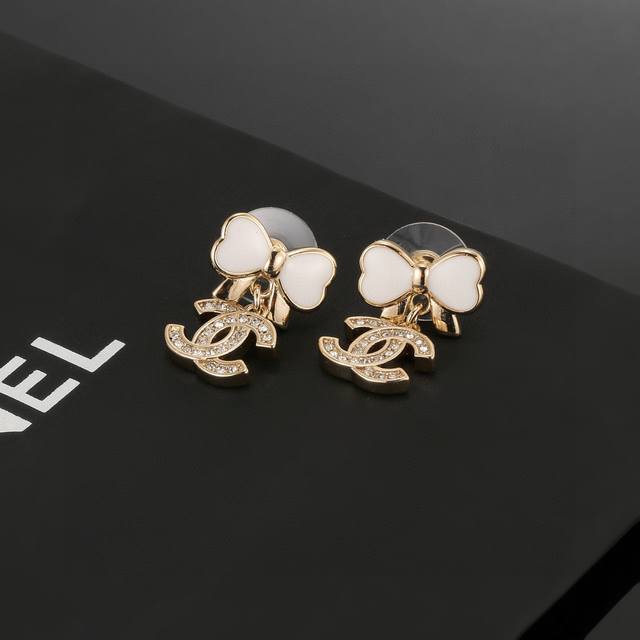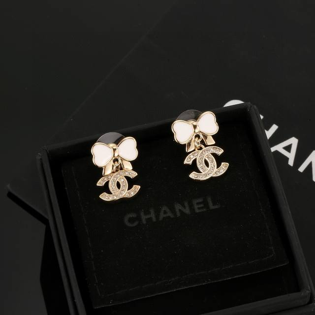 Chanel bow earrings flatter the face shape. The gold metal trim gives them a mysterious, mature, and vintage feel. The double C metal logo is classic and versatile! Earrings