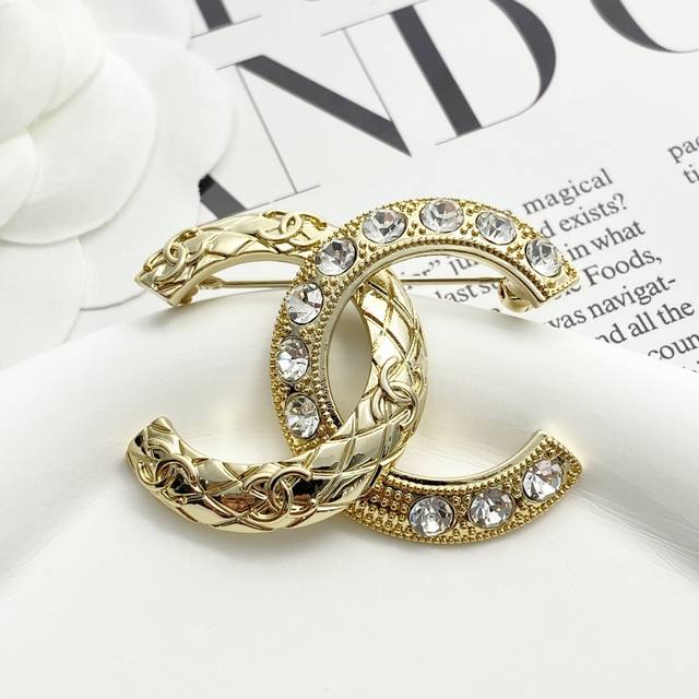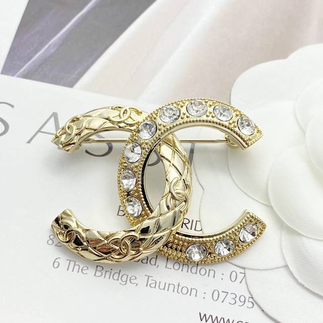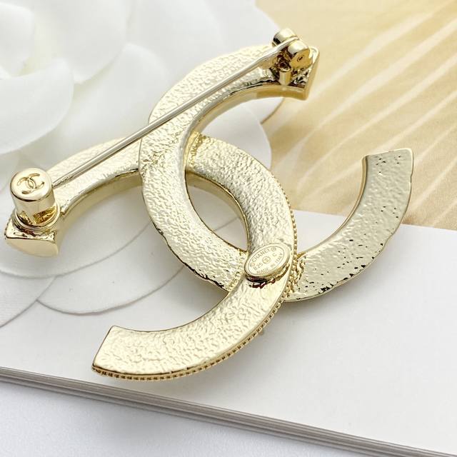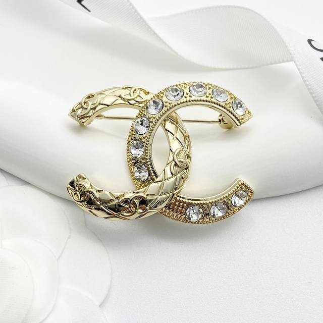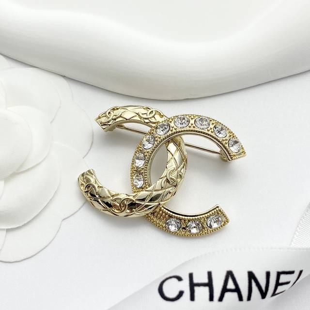 Chanel 25 Light Gold Quilted Rhinestone Double C Brooch