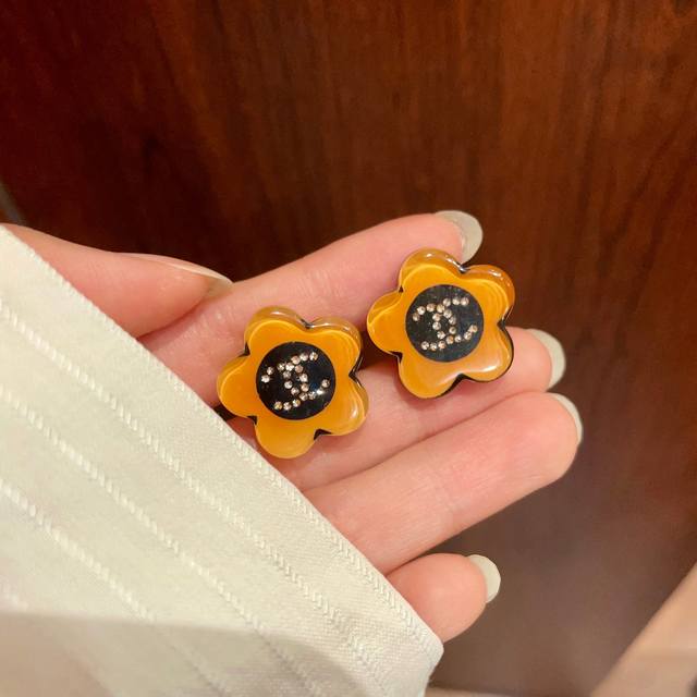 Chanel latest light gold blue diamond Cc earrings consistent with Z batch brass