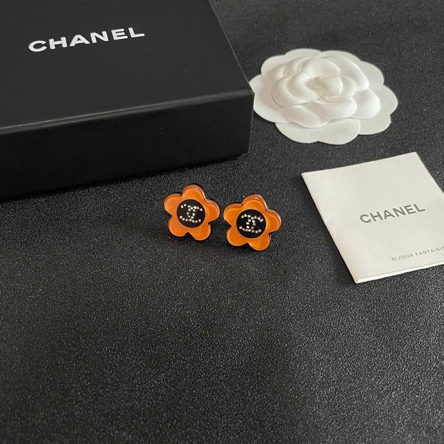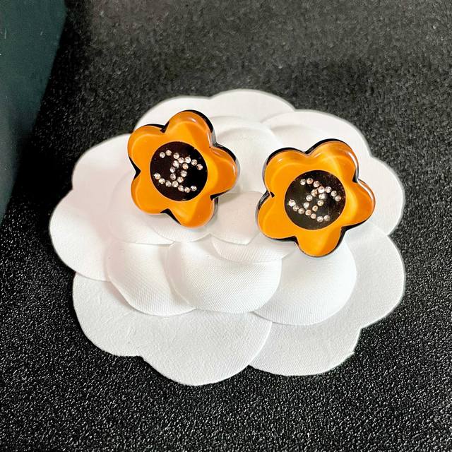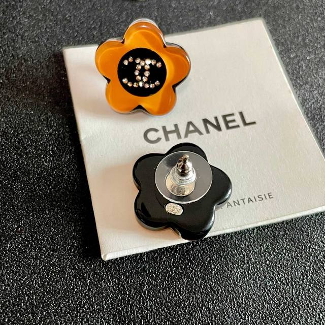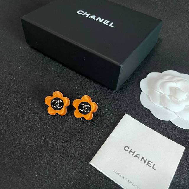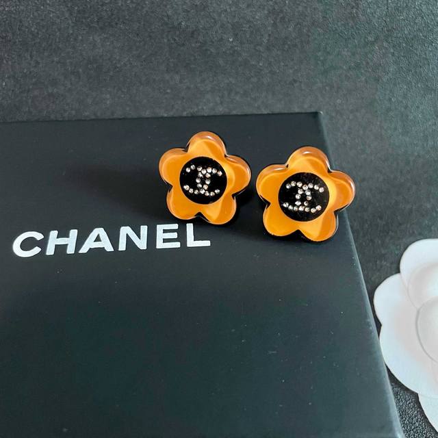 / Chanel Camellia Double C Diamond Stud Earrings Ddd