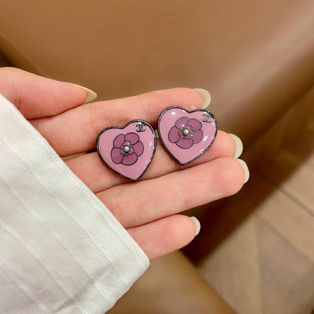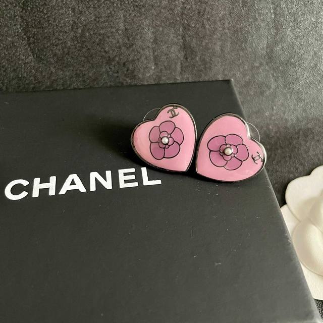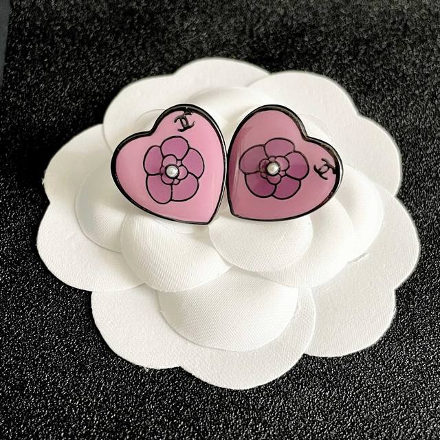 Chanel latest pearl black heart earrings consistent with the Z batch brass mater