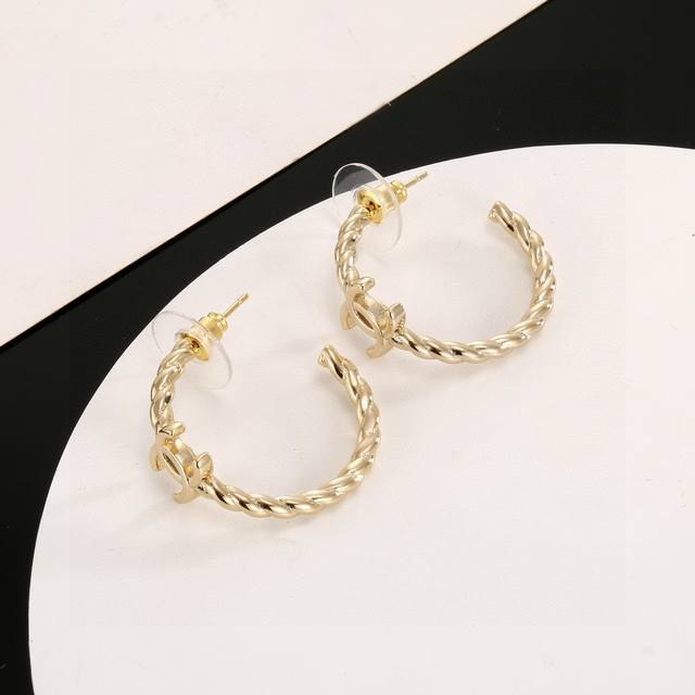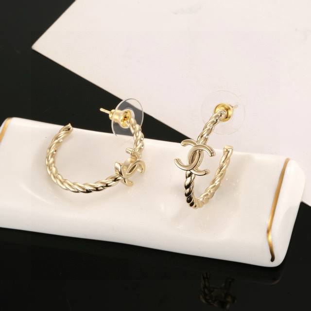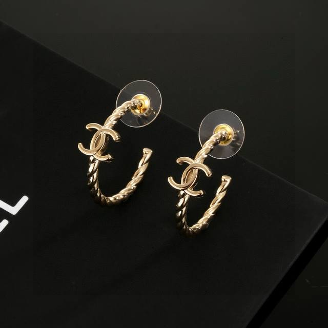 Chanel classic half-circle gold double C stud earrings. These are versatile and stylish, easy to match with anything, and perfect for everyday wear. They flatter the face shape and exude elegance and sophistication. (