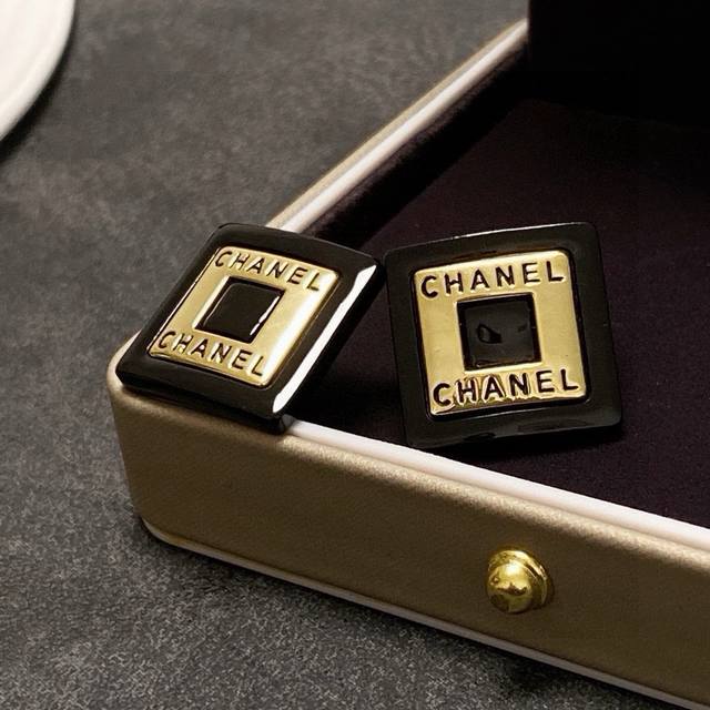 Chanel double C black square stud earrings, super delicate, just the right size, very versatile and suitable for everyday wear. Loved at first sight, keeping one for myself! So beautiful!
