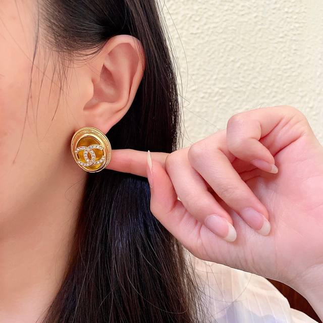 / Chanel Double C Diamond Stud Earrings Ddd