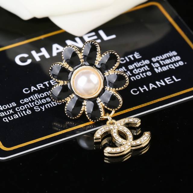 / Chanel Fall/Winter Collection Diamond Drop Flower Double C Brooch - A cleverly