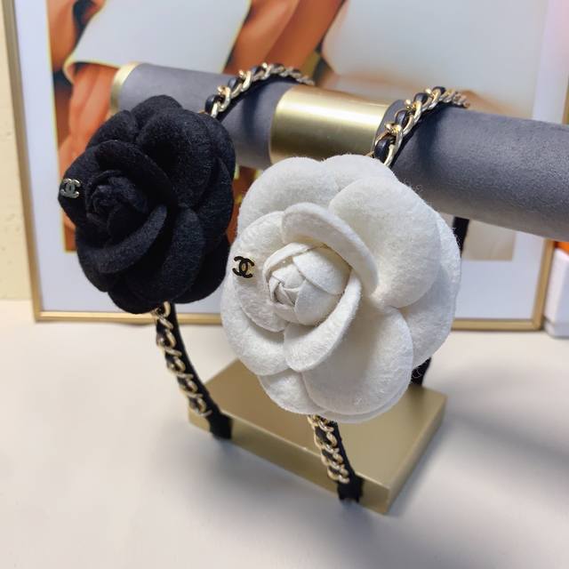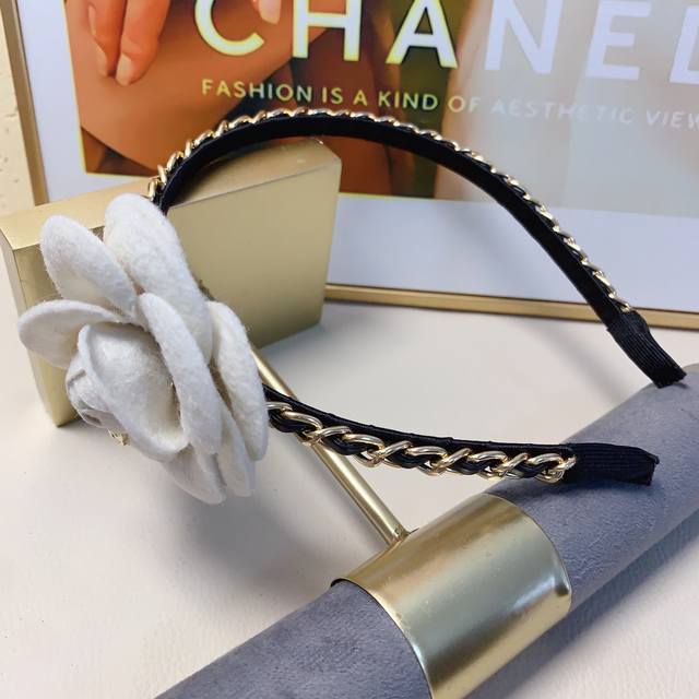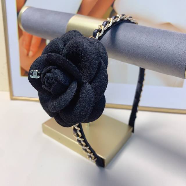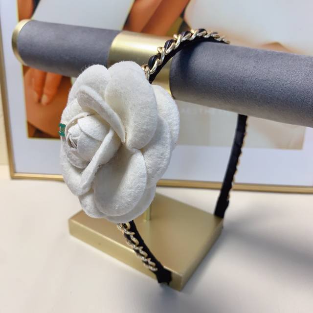 Chanel headband, camellia chain, luxurious style, versatile and elegant, a must-have for any fairy-like girl, exuding a sophisticated and elegant vibe~ A treasure, a must-buy, highly recommended! Single item.