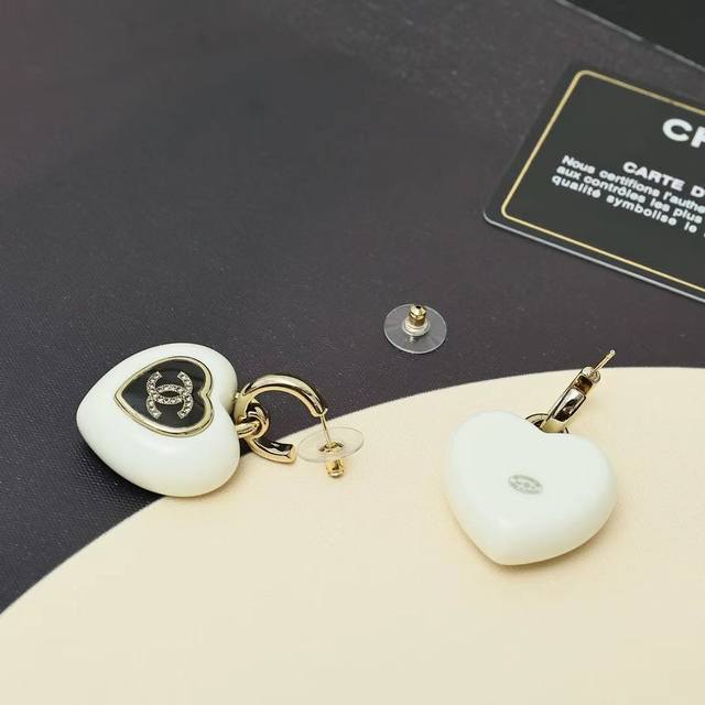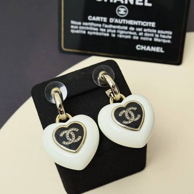 ) These black and white earrings feature a metal trim and the classic double C logo at the center, exuding elegance and sophistication. Made of lightweight and durable acrylic, they're perfect for everyday wear or formal occasions. The metal hook design ensures a secure and comfortable fit. A perfect blend of classic Chanel elements and modern style, these earrings are ideal for those who love refined fashion and complement both minimalist and French-inspired outfits. (