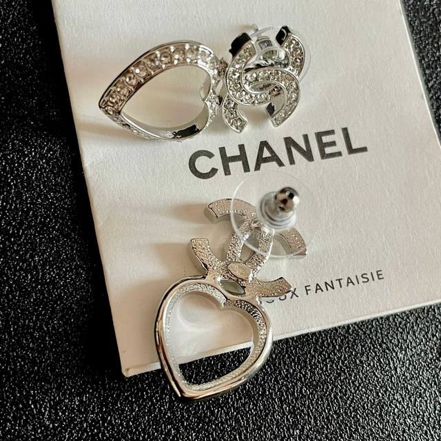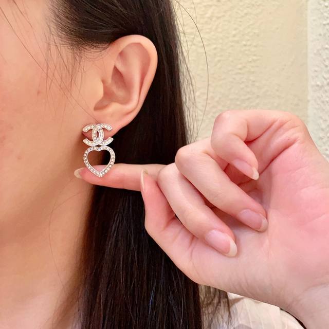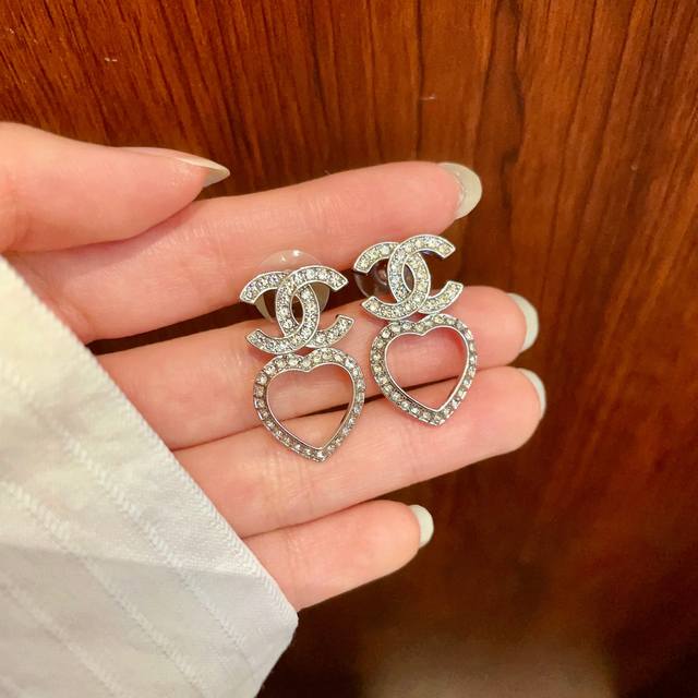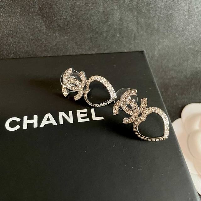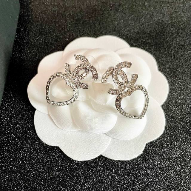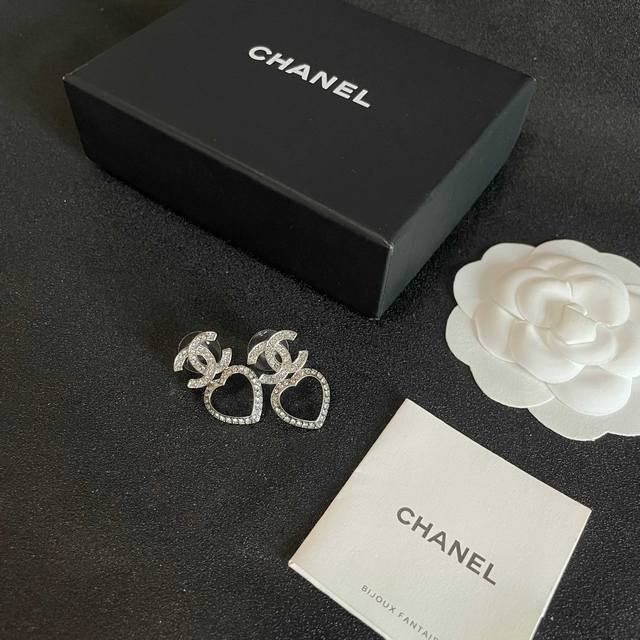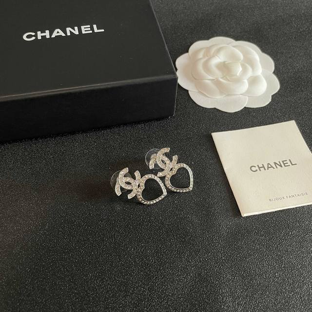 / Chanel Heart-Shaped Openwork Double C Diamond Earrings Ddd